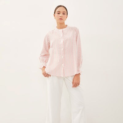 SIMPLICITY Elastic Sleeve Striped Shirt