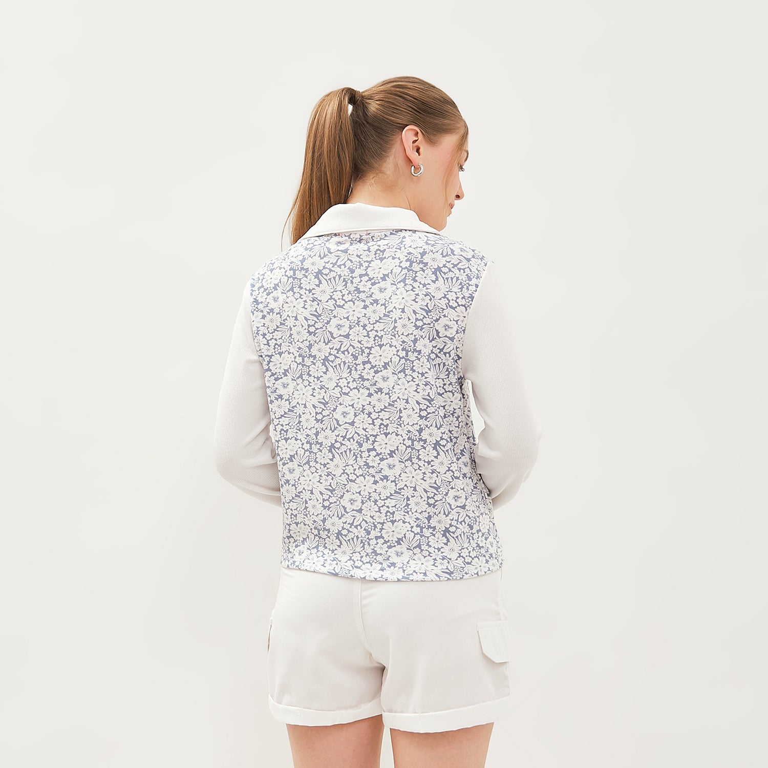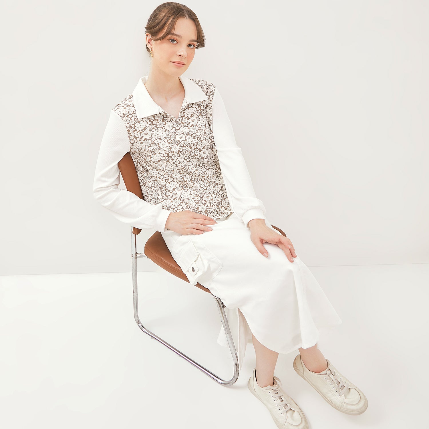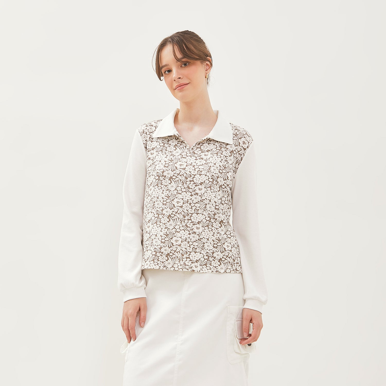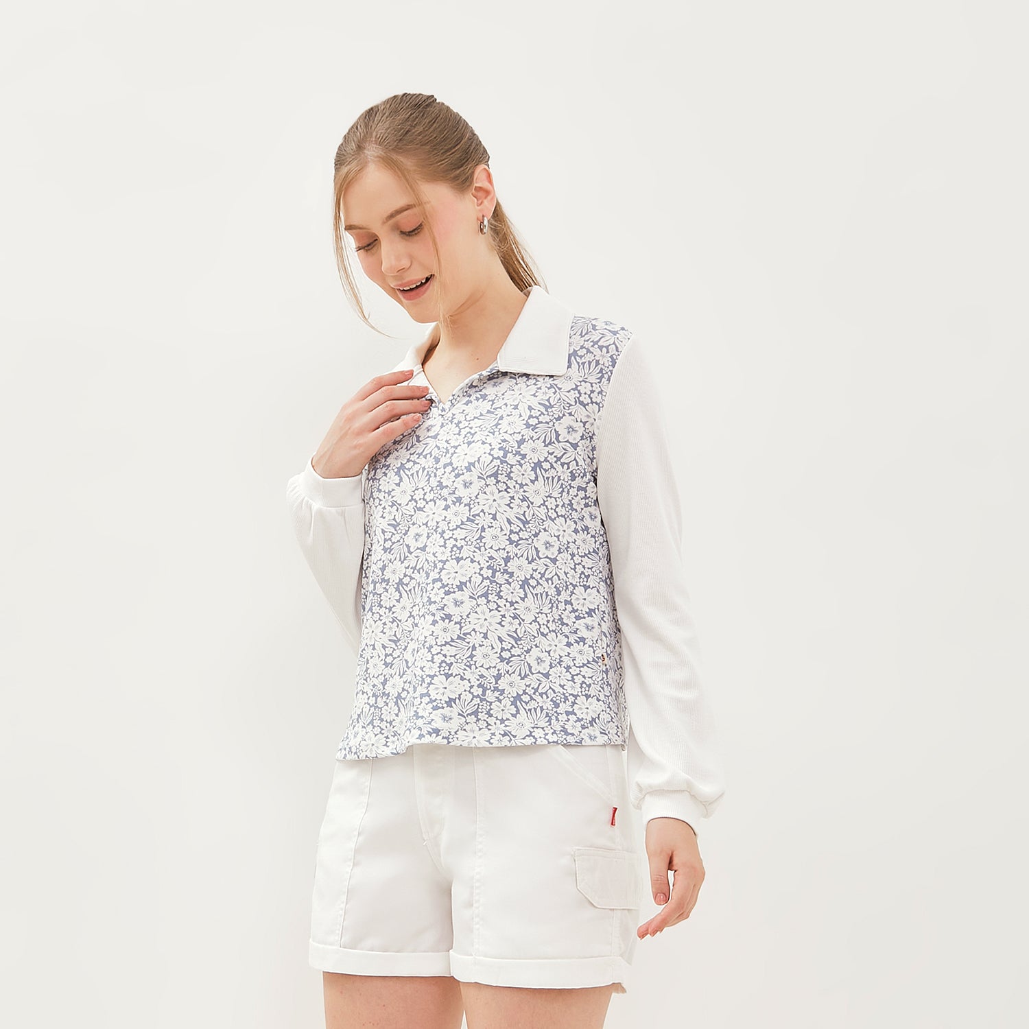 - Atasan lengan panjang ini punya detail print floral merah yang super gemas