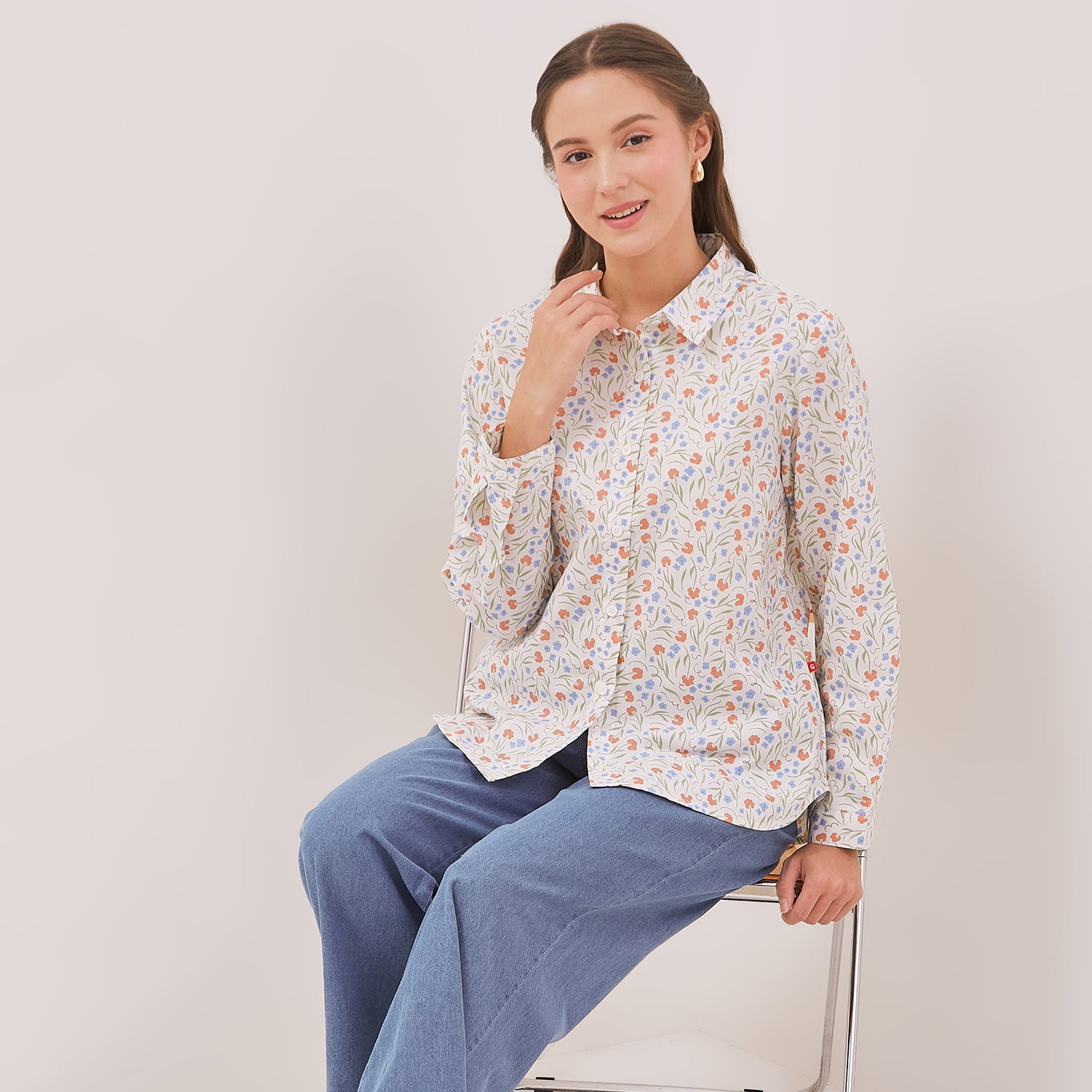 Kemeja Graphis dengan motif bunga yang feminin dan elegan