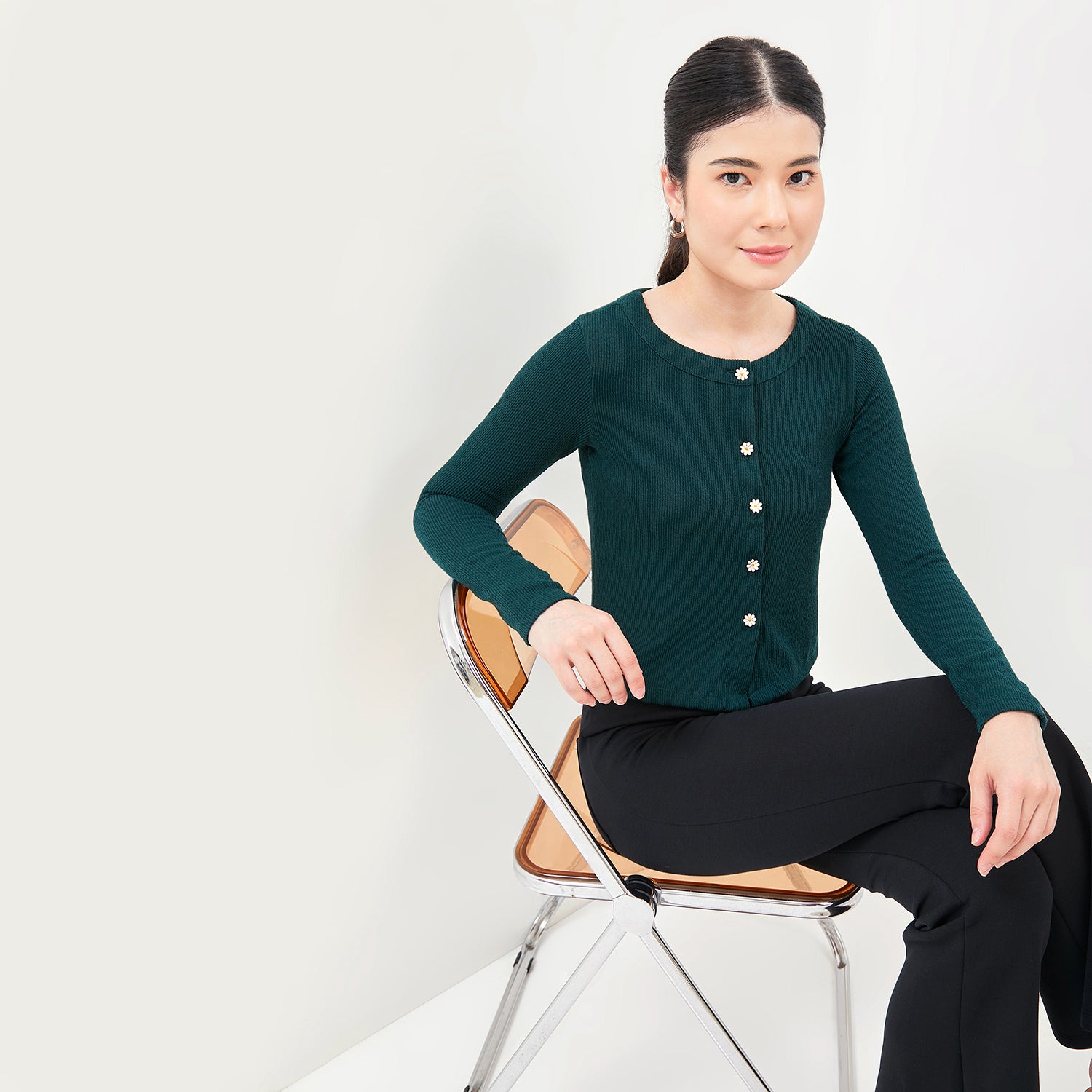 Didesain dengan model kerah bulat yang simpel dan clean, menciptakan siluet yang manis dan mudah dipadupadankan dengan berbagai bawahan