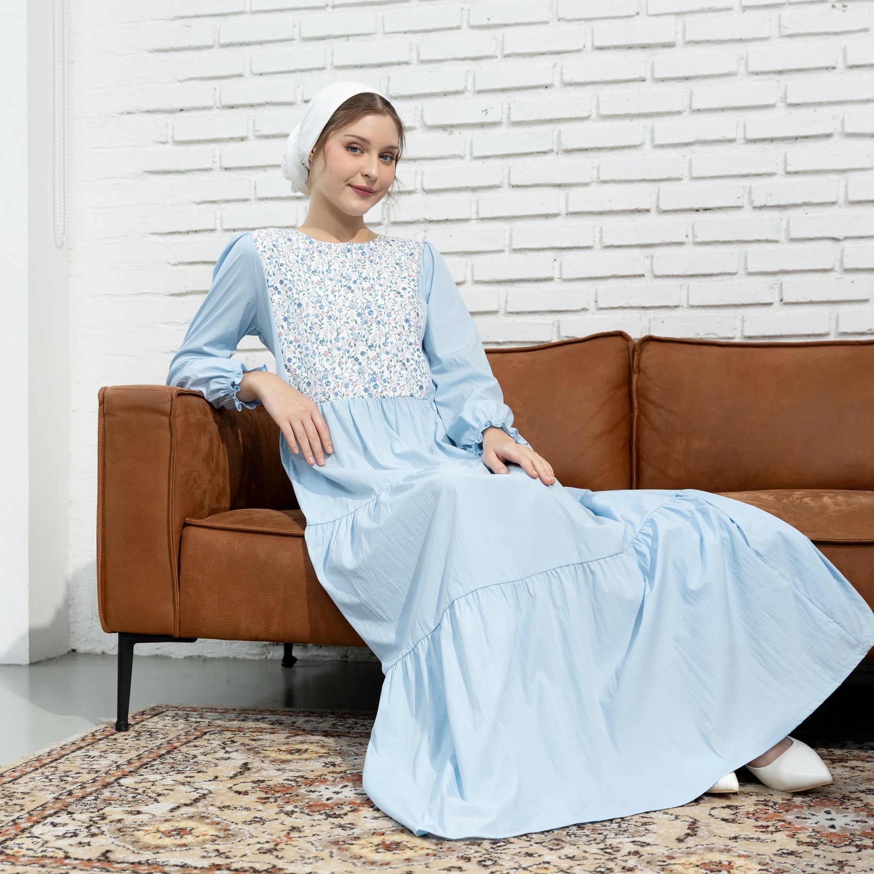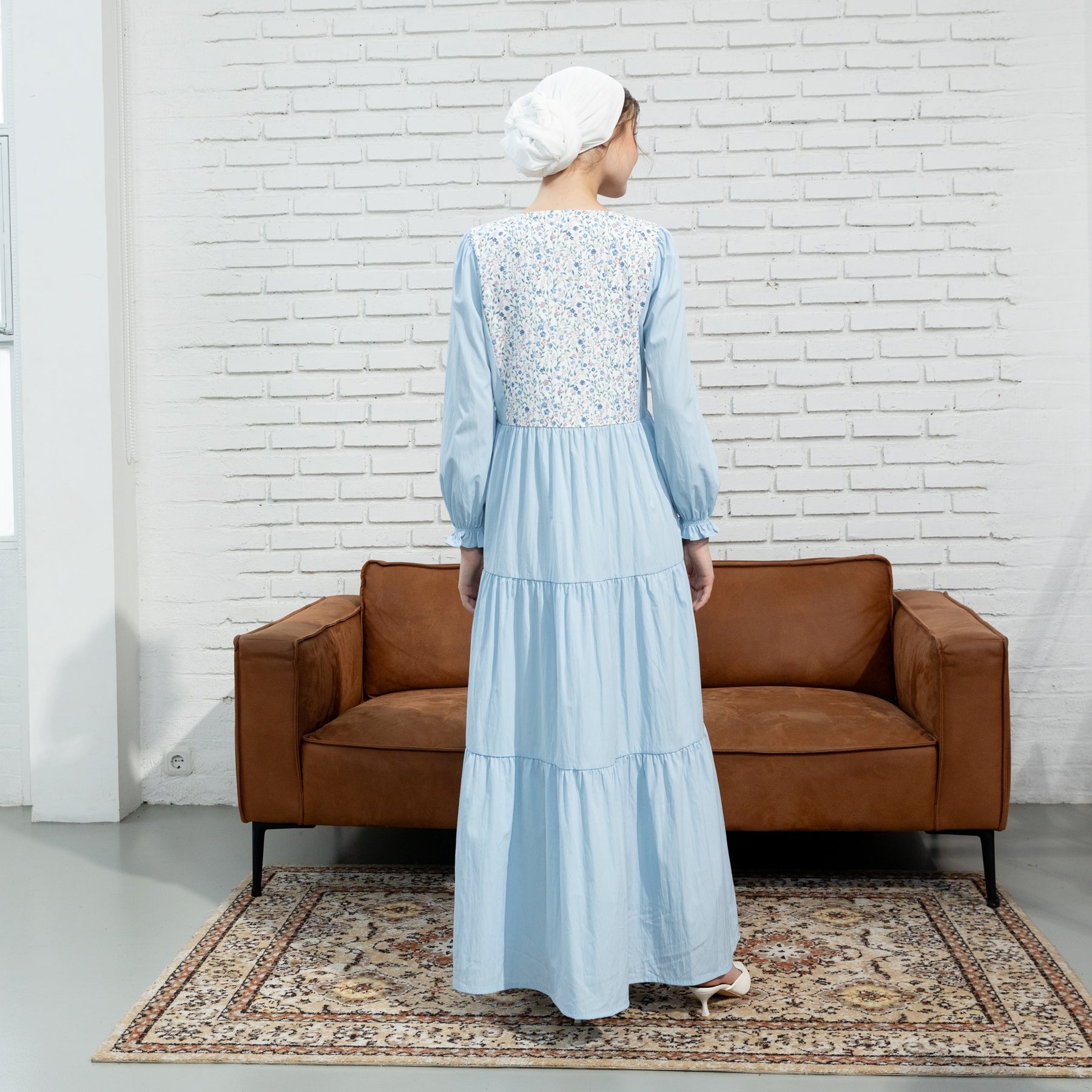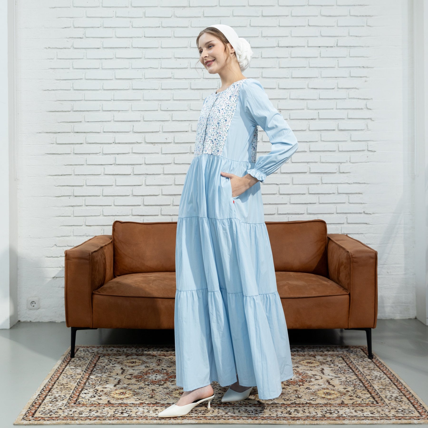 Potongan tiered (bertingkat) pada bagian rok yang menciptakan siluet flowy dan anggun