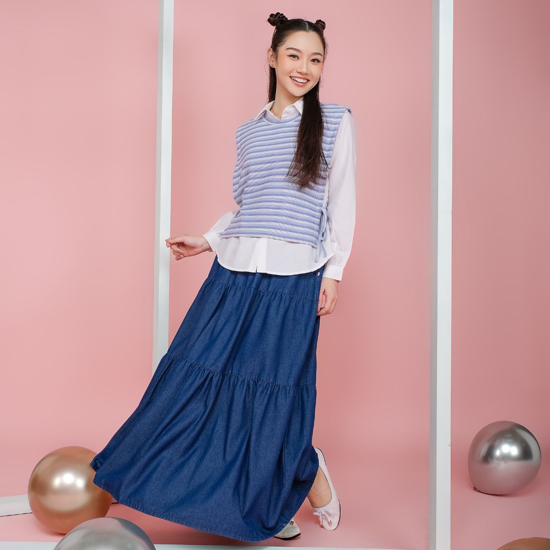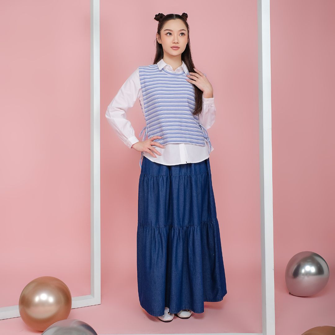 - Sementara itu, vest dengan motif garis memberikan sentuhan berbeda dengan desain yang lebih modern dan dinamis