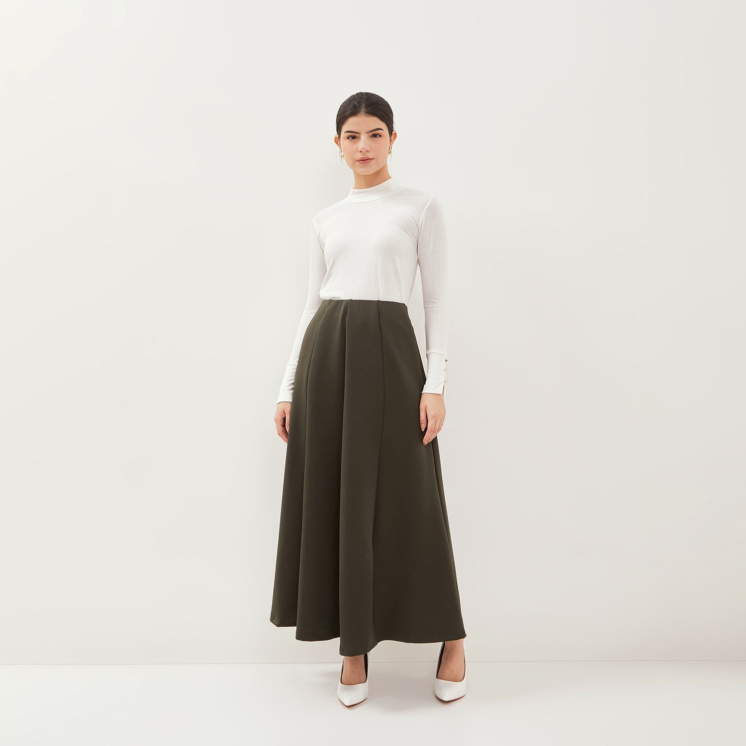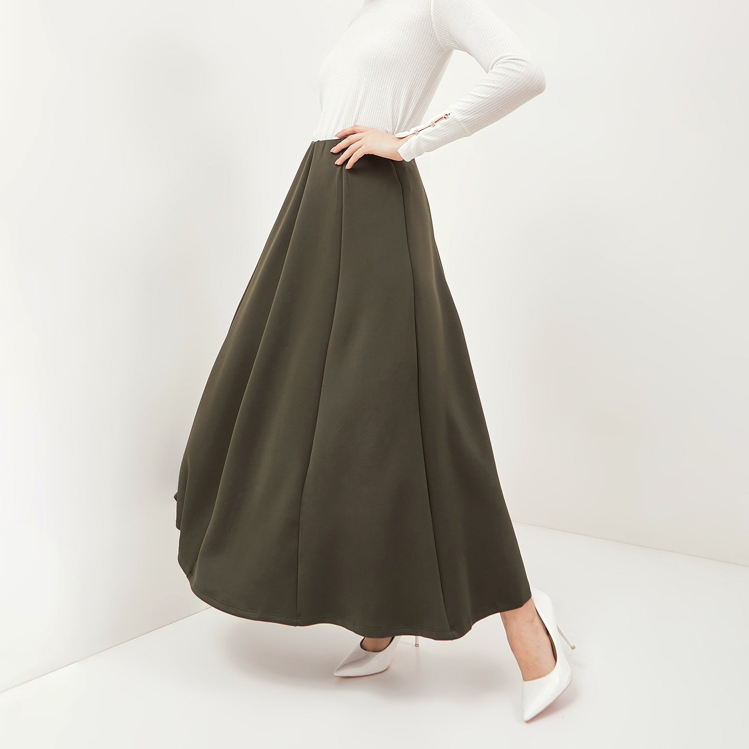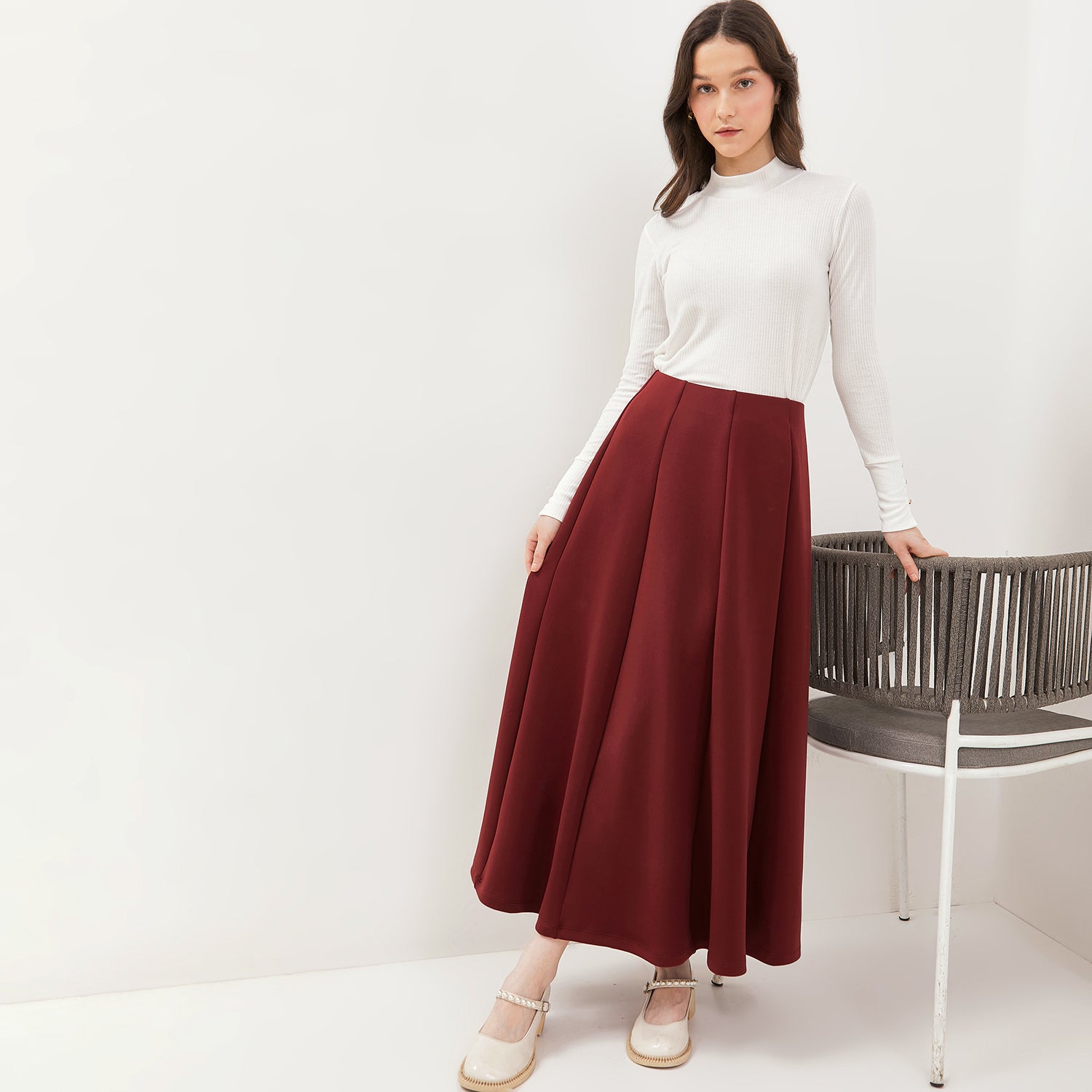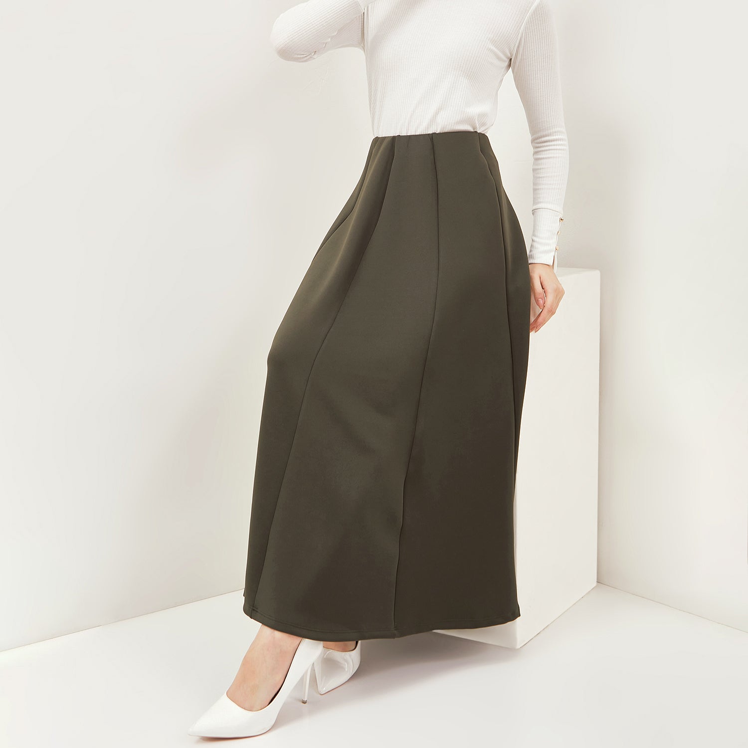 - Rok panjang dengan pola pecah 8 bersiluet A line