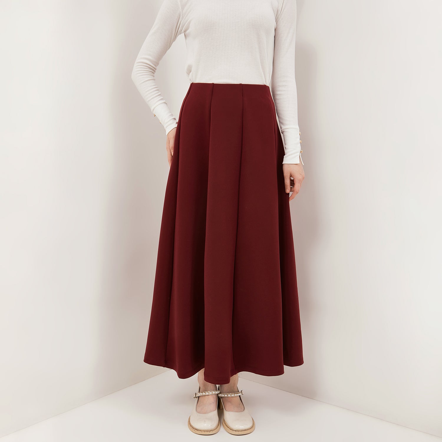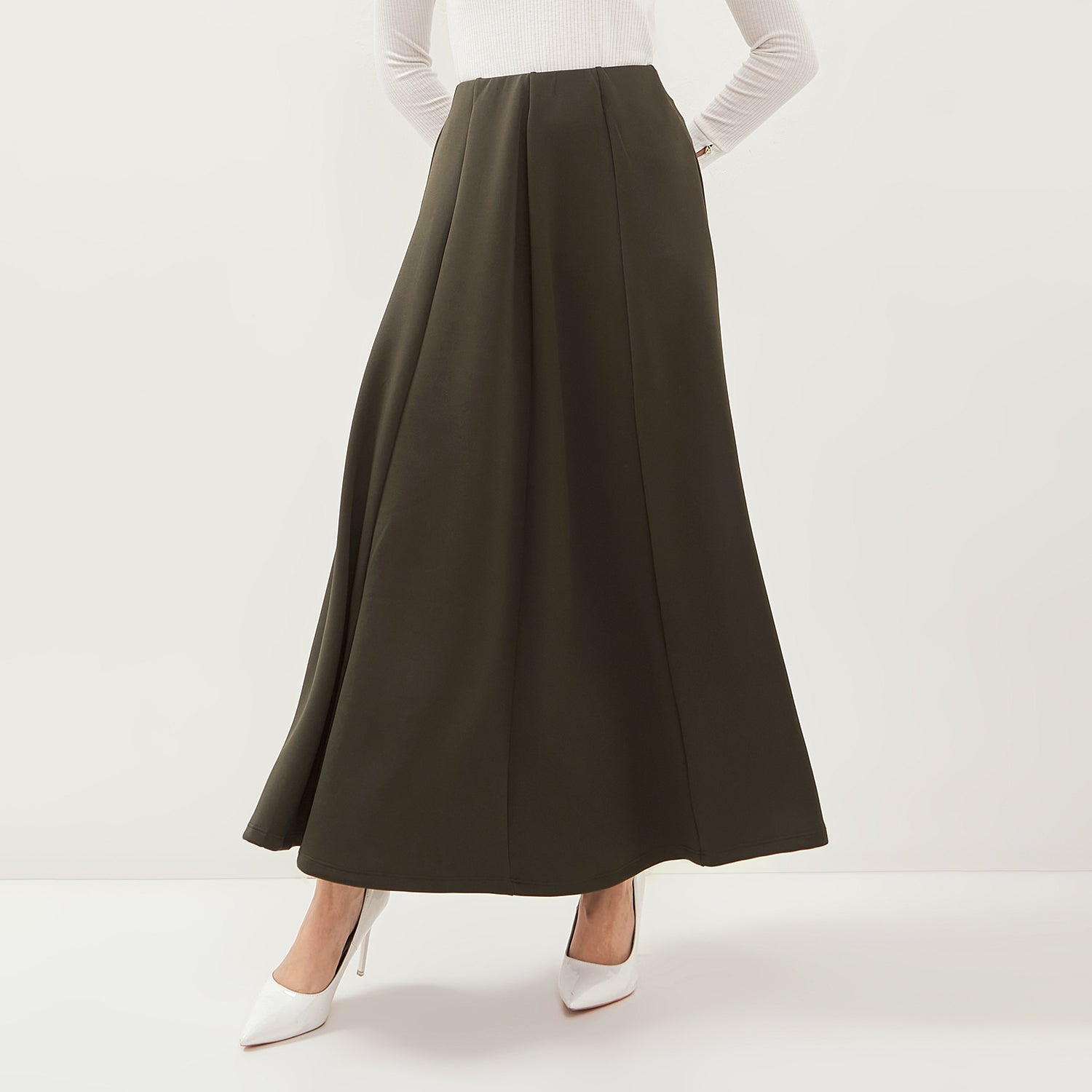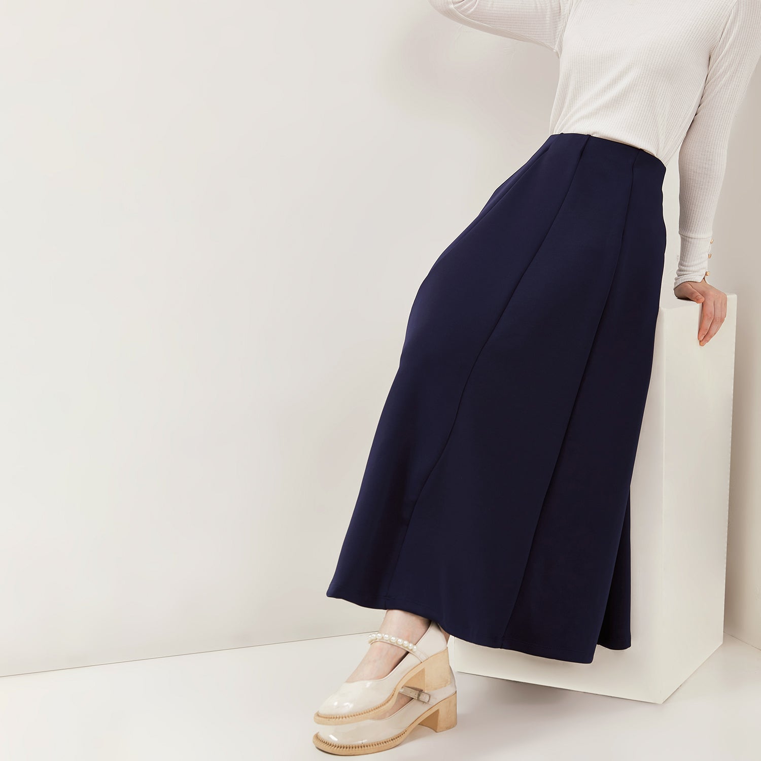 - Rok panjang dengan pola pecah 8 bersiluet A line