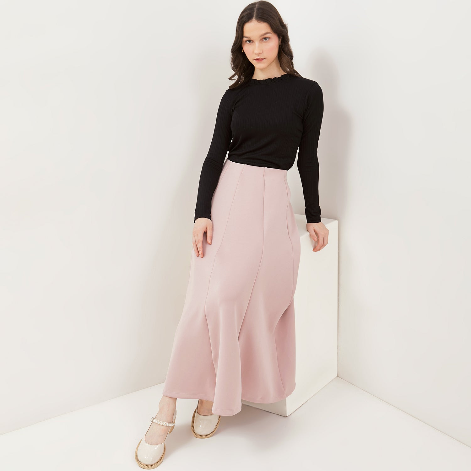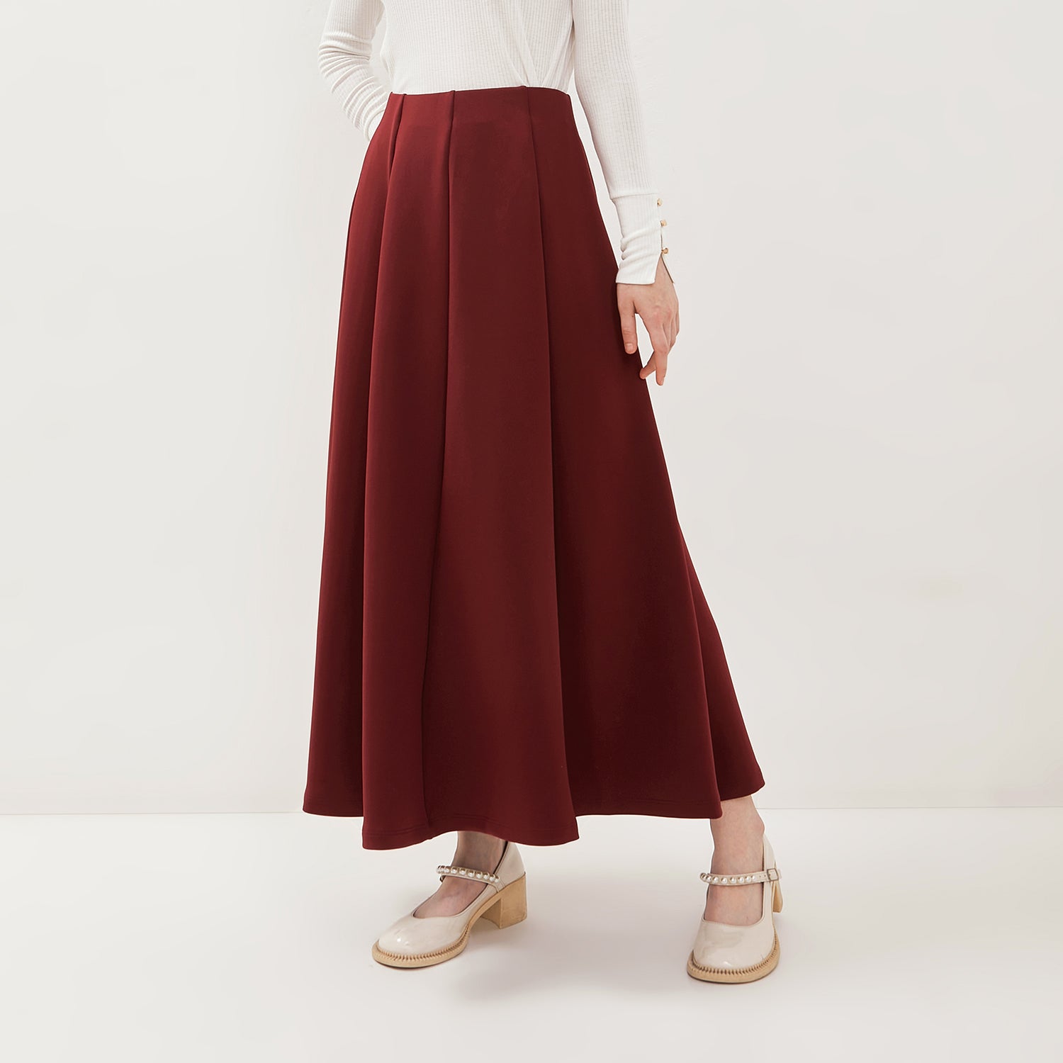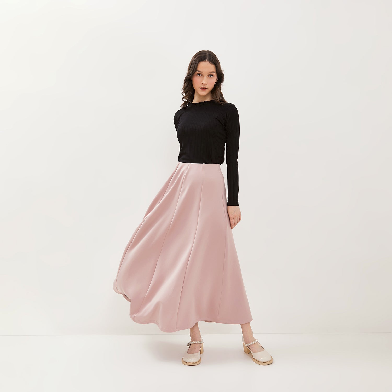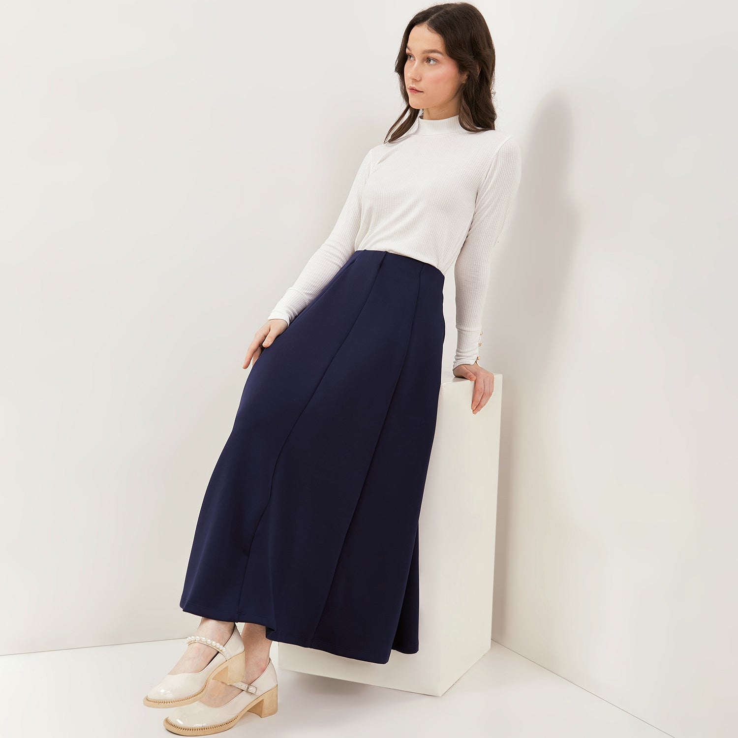 - Rok panjang dengan pola pecah 8 bersiluet A line