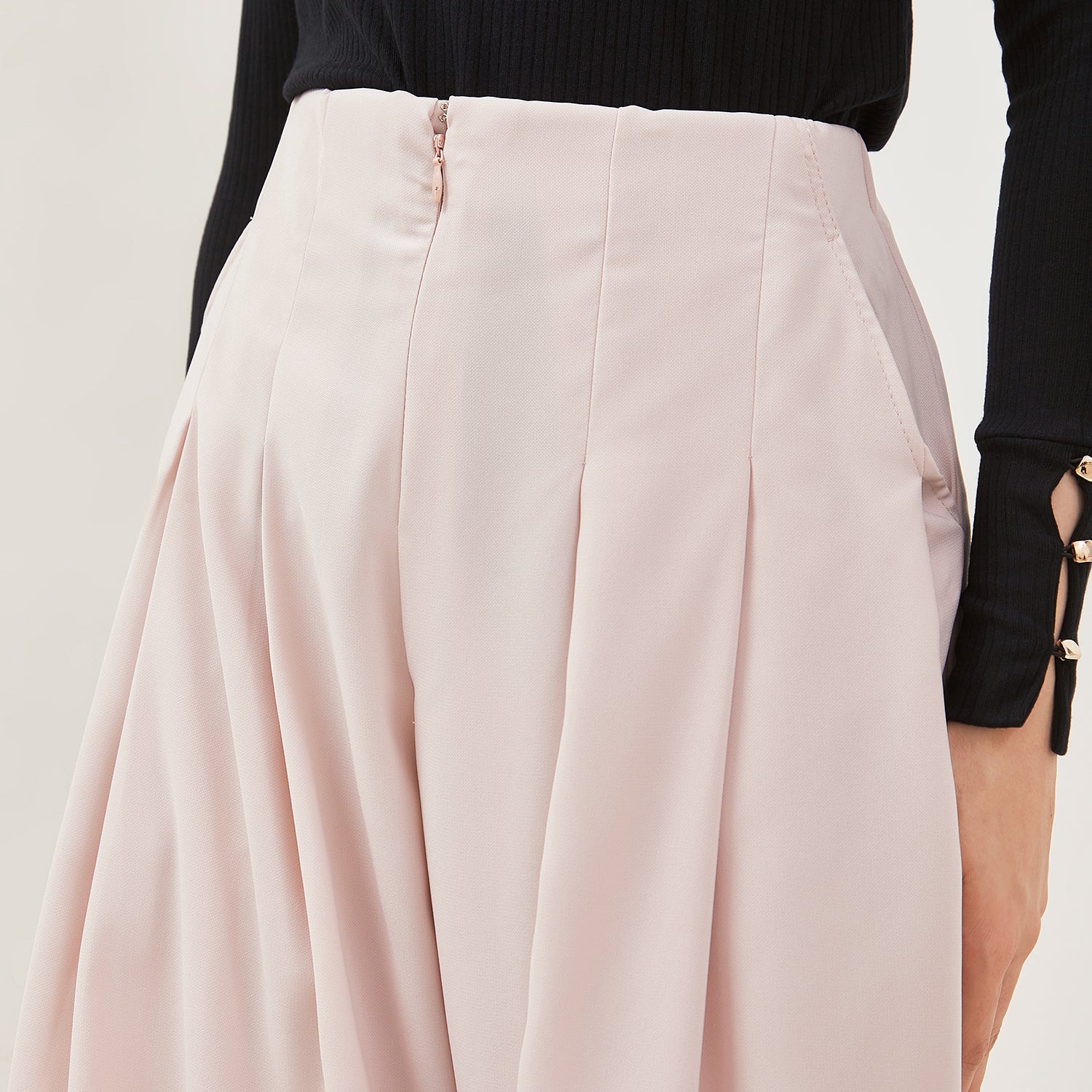 - Aksen lipatan di bagian depan menciptakan dimensi yang mempertegas siluet, menjadikannya pilihan sempurna untuk tampilan yang anggun, modern, dan profesional