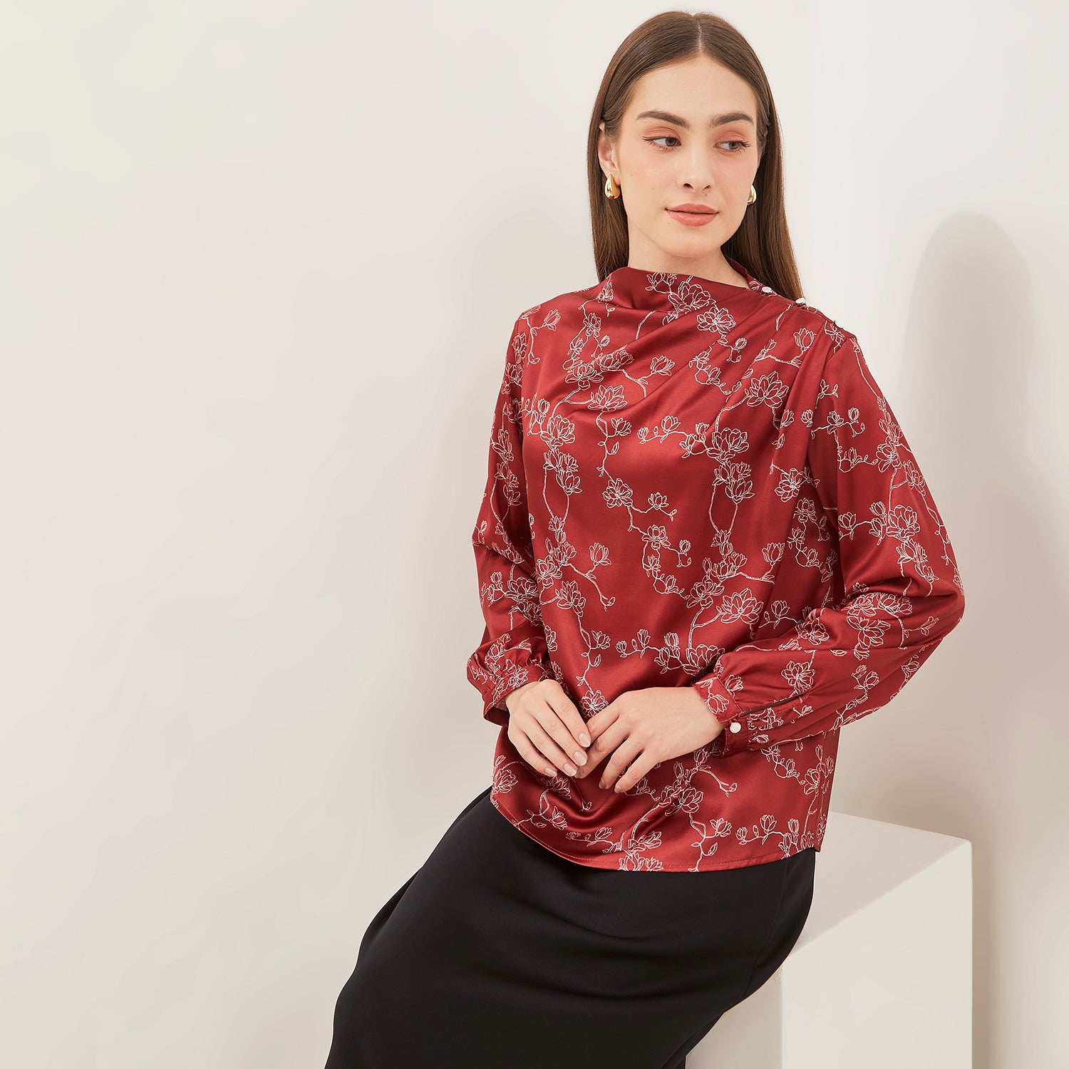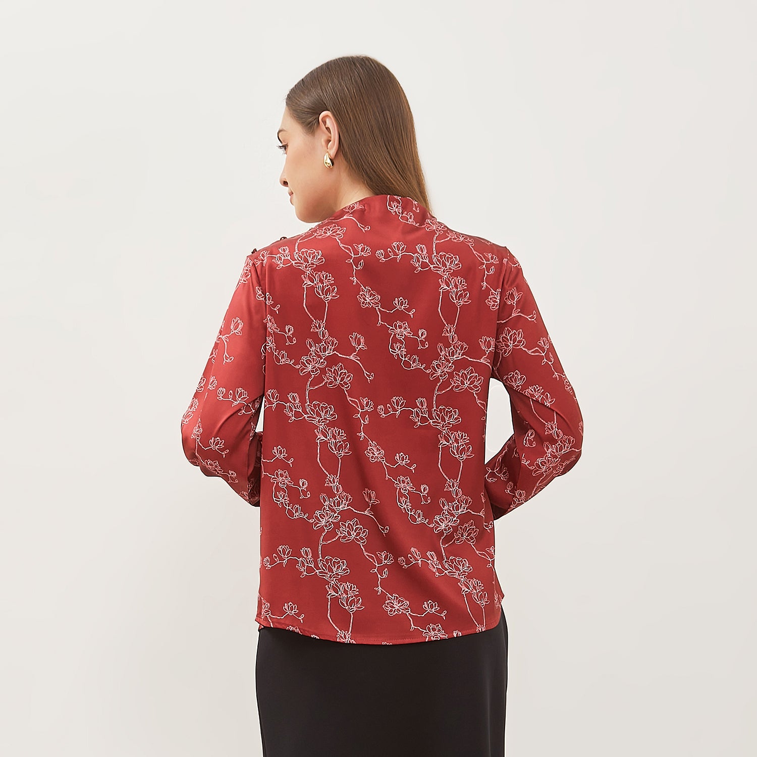 - Blus Simplicity tampil memukau dengan sentuhan kain satin bermotif bunga yang lembut dan berkilau