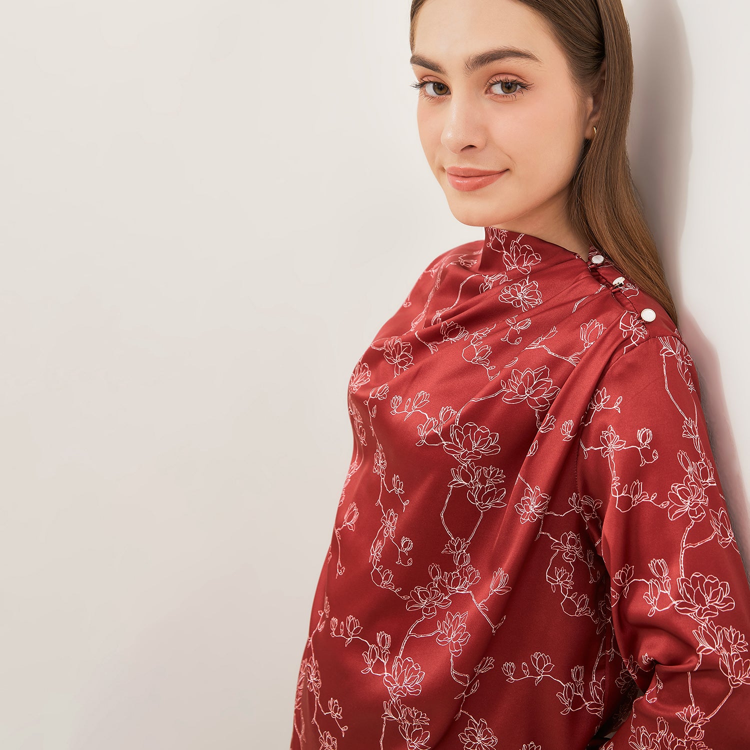 SIMPLICITY Floral Print Shoulder Drape Blouse