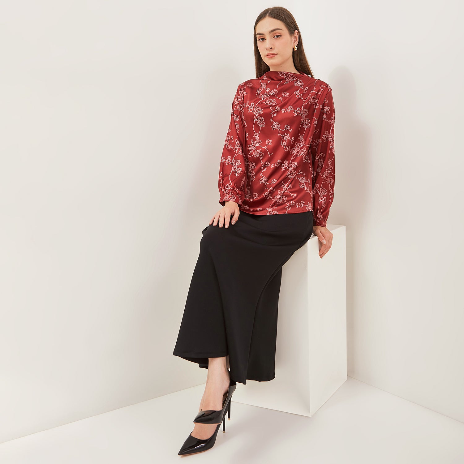🌸 SIMPLICITY Floral Print Shoulder Drape Blouse