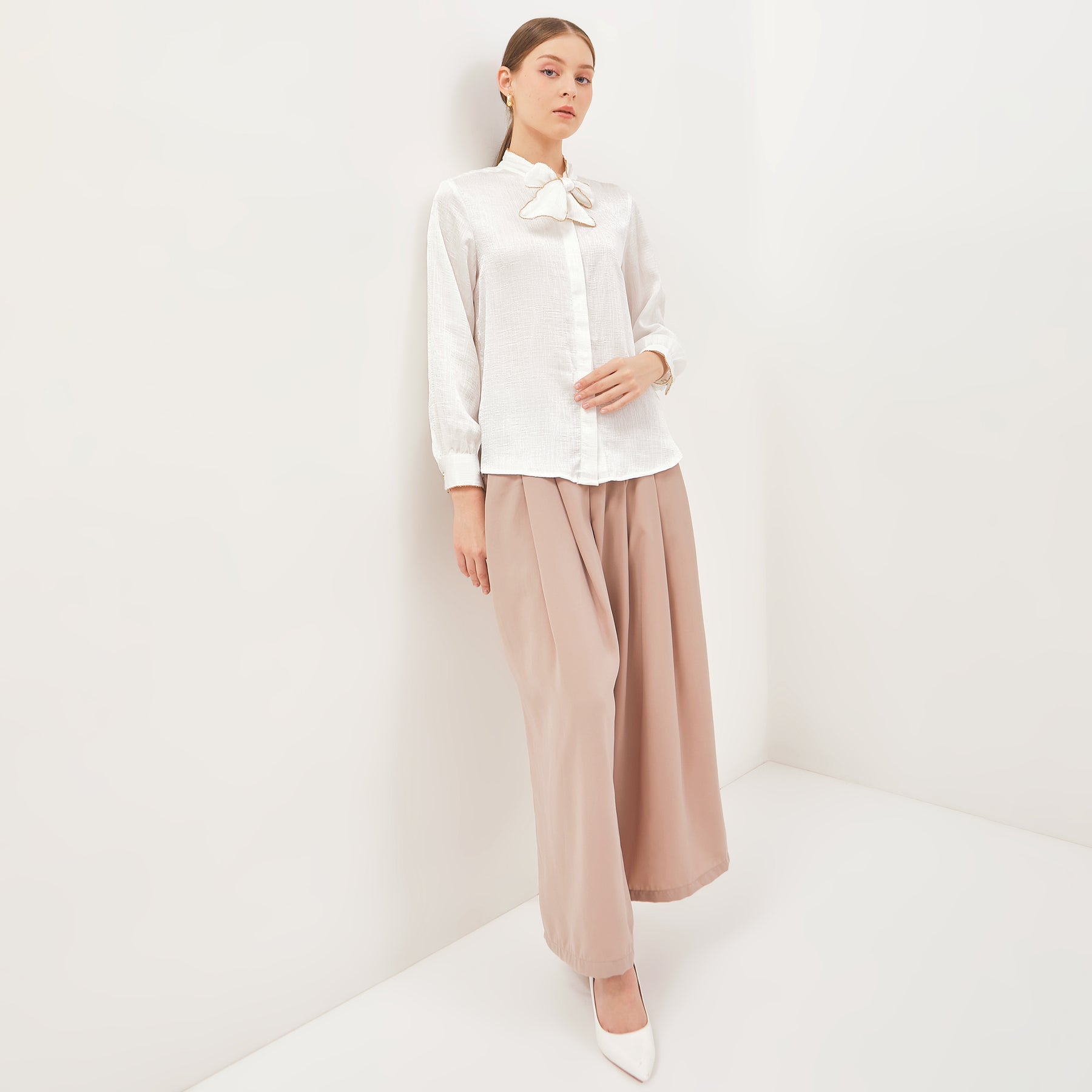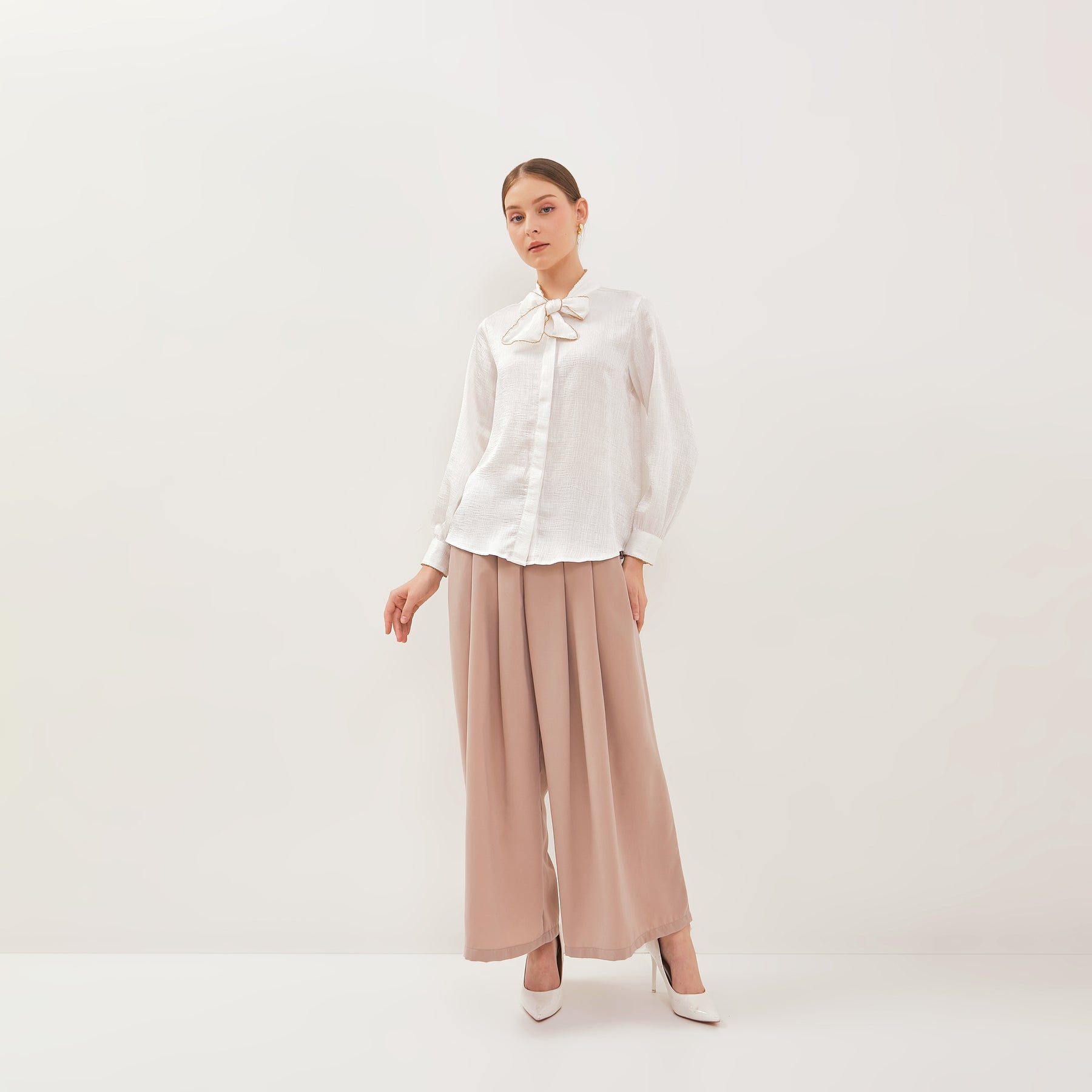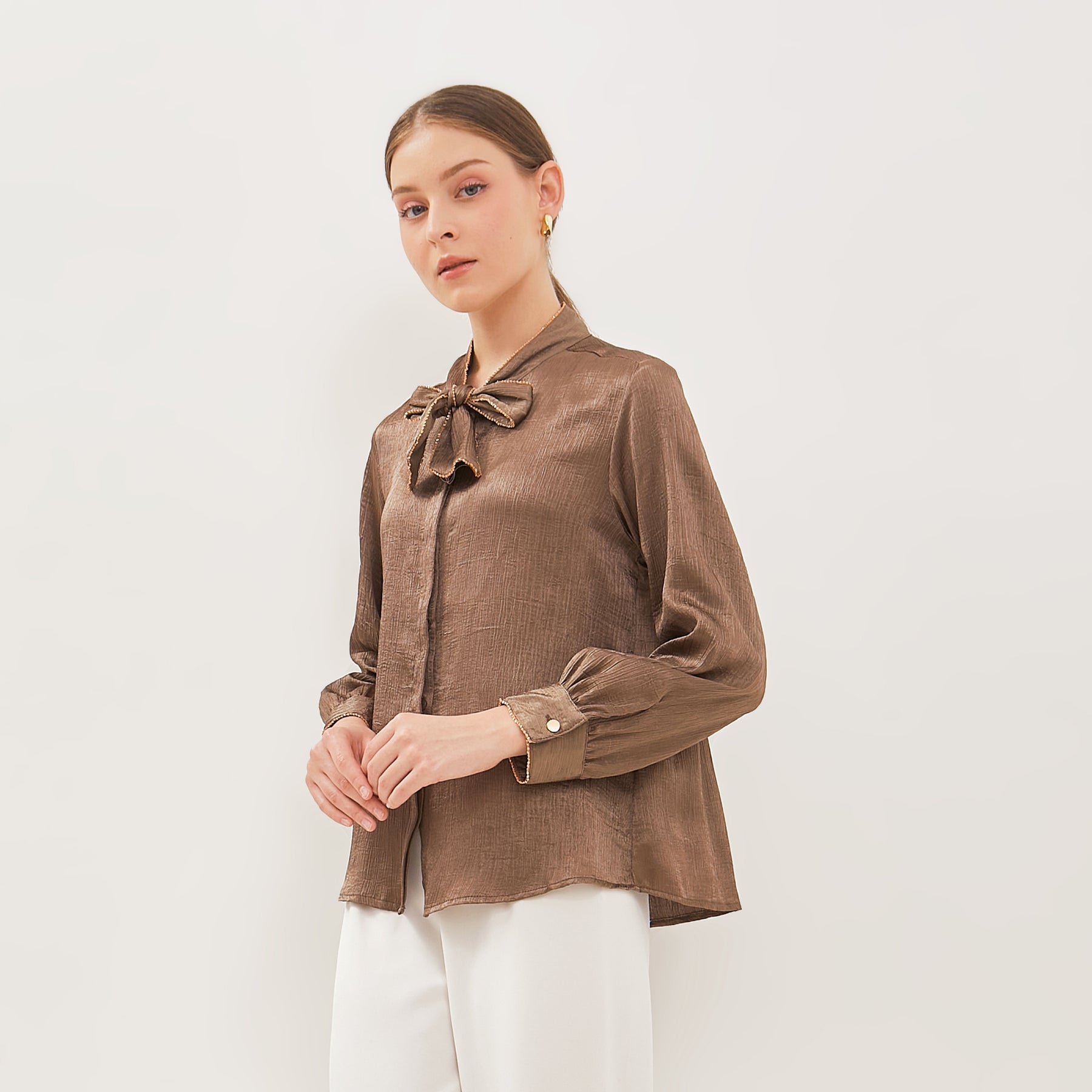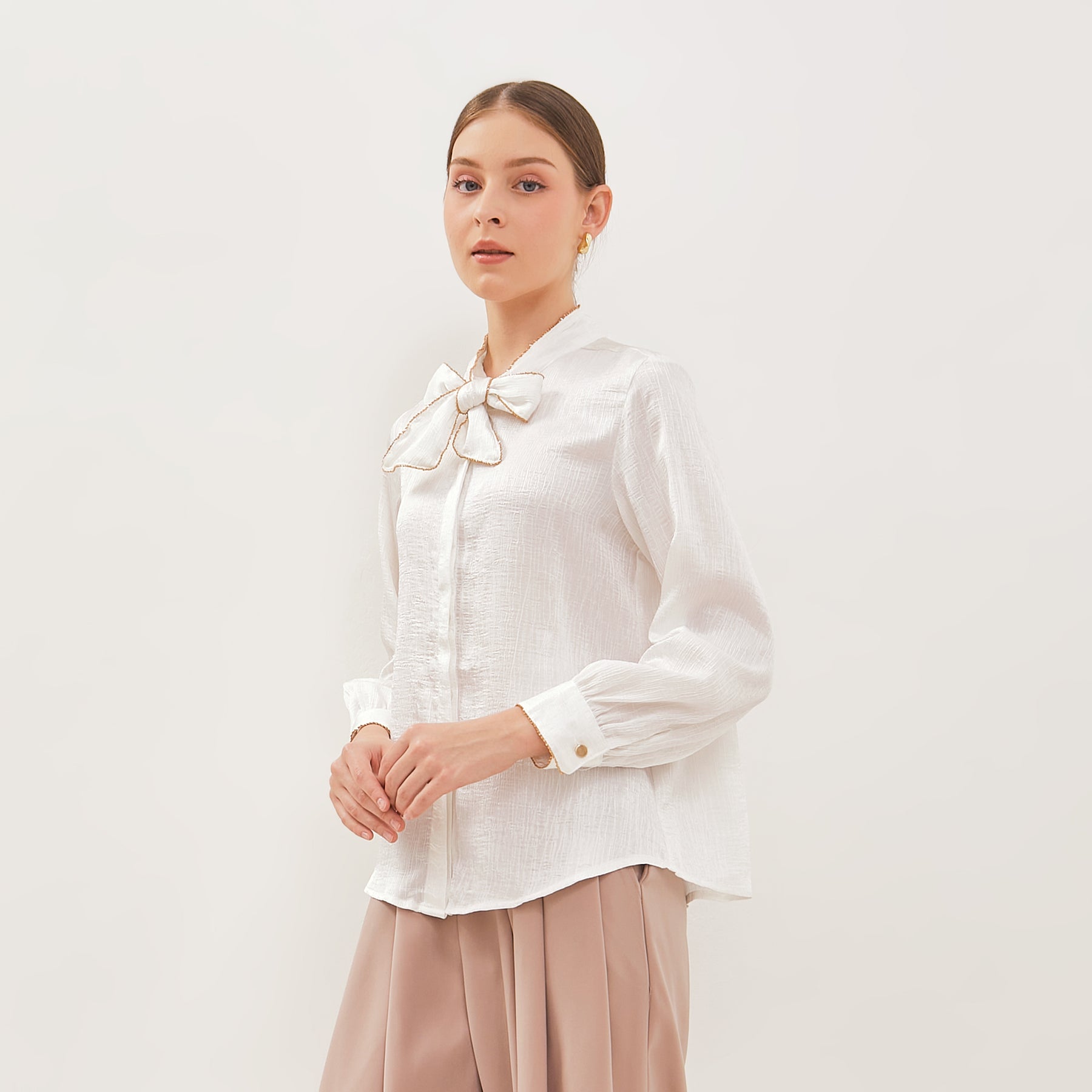 Berlengan panjang dengan bukaan kancing di ujungnya, blouse ini memberikan sentuhan klasik yang menawan