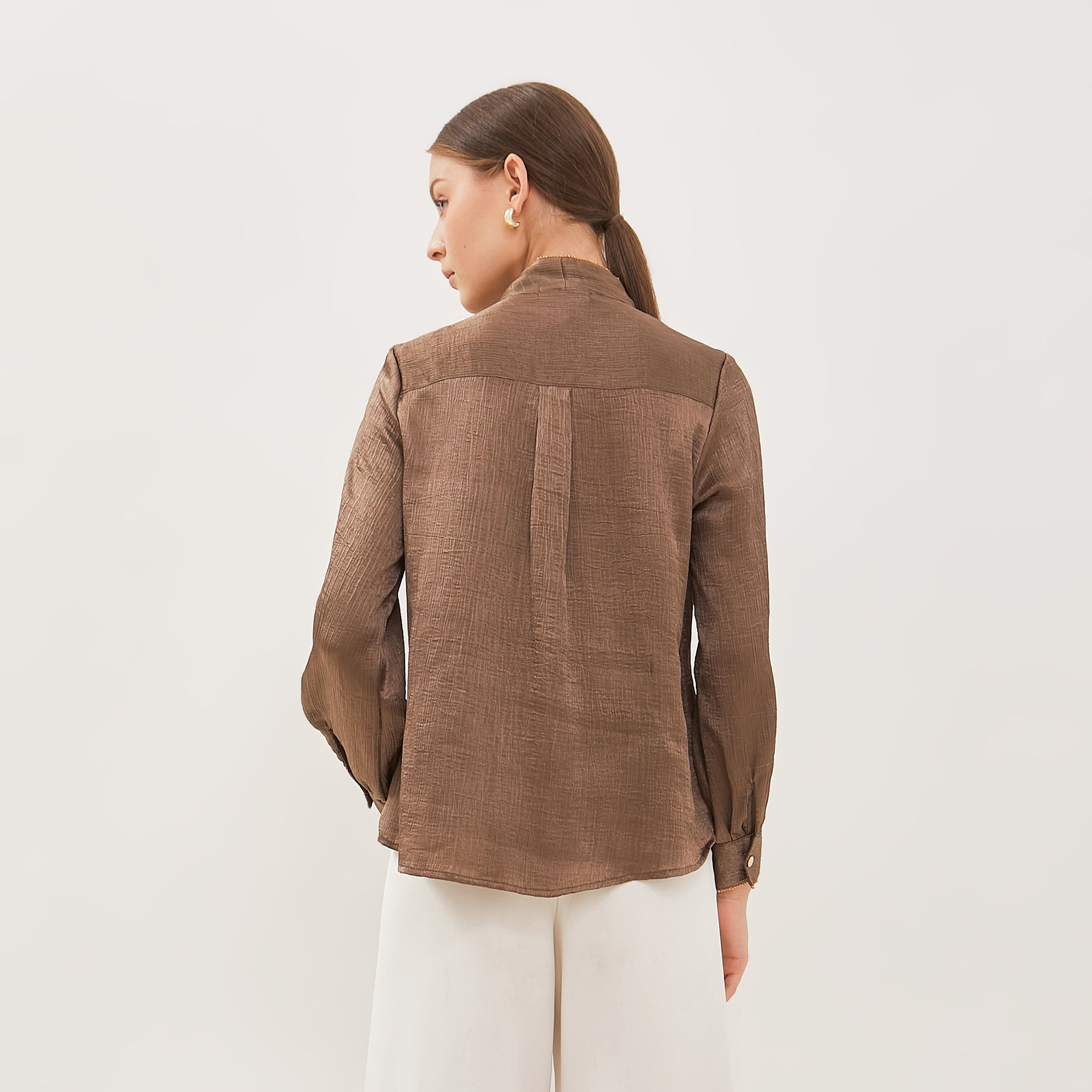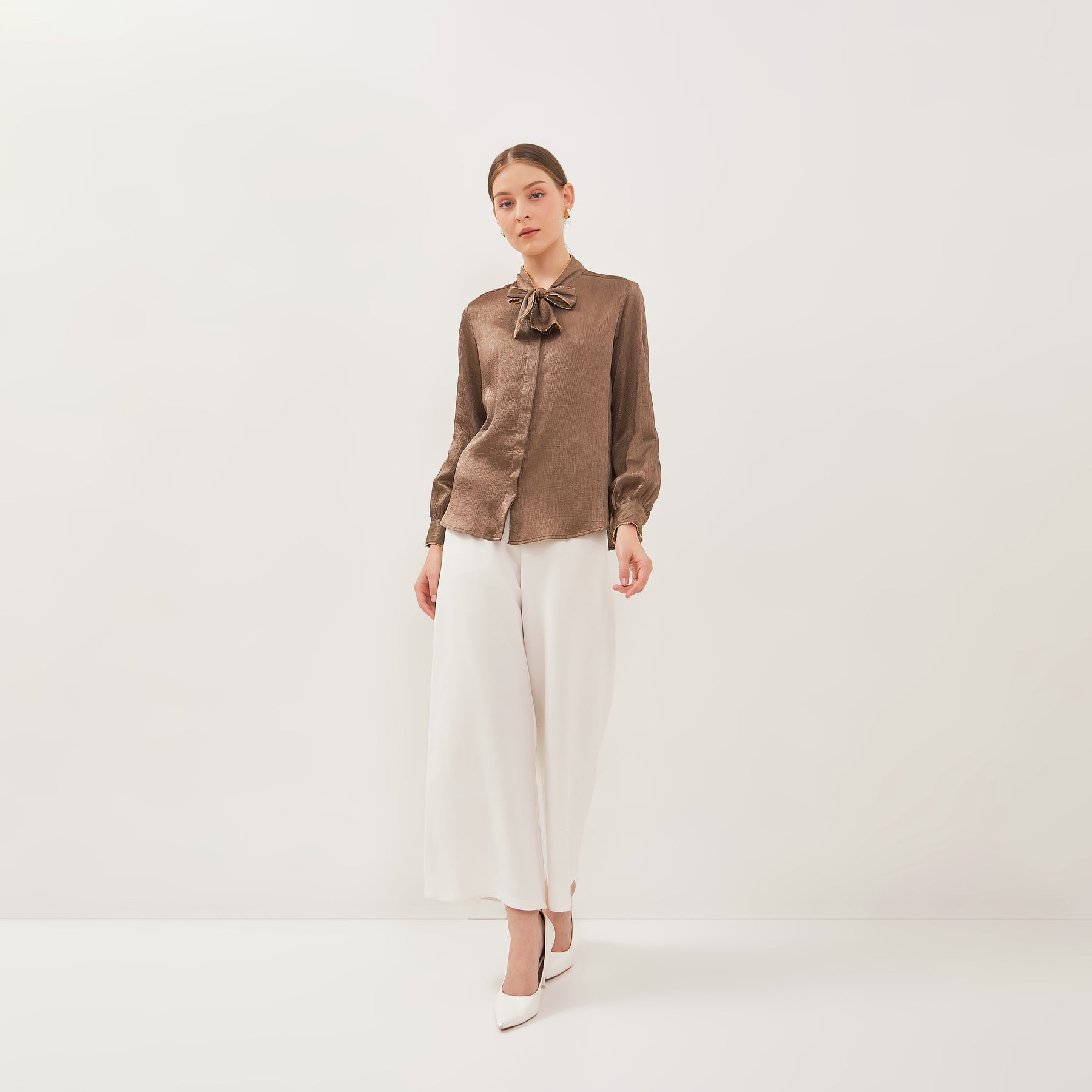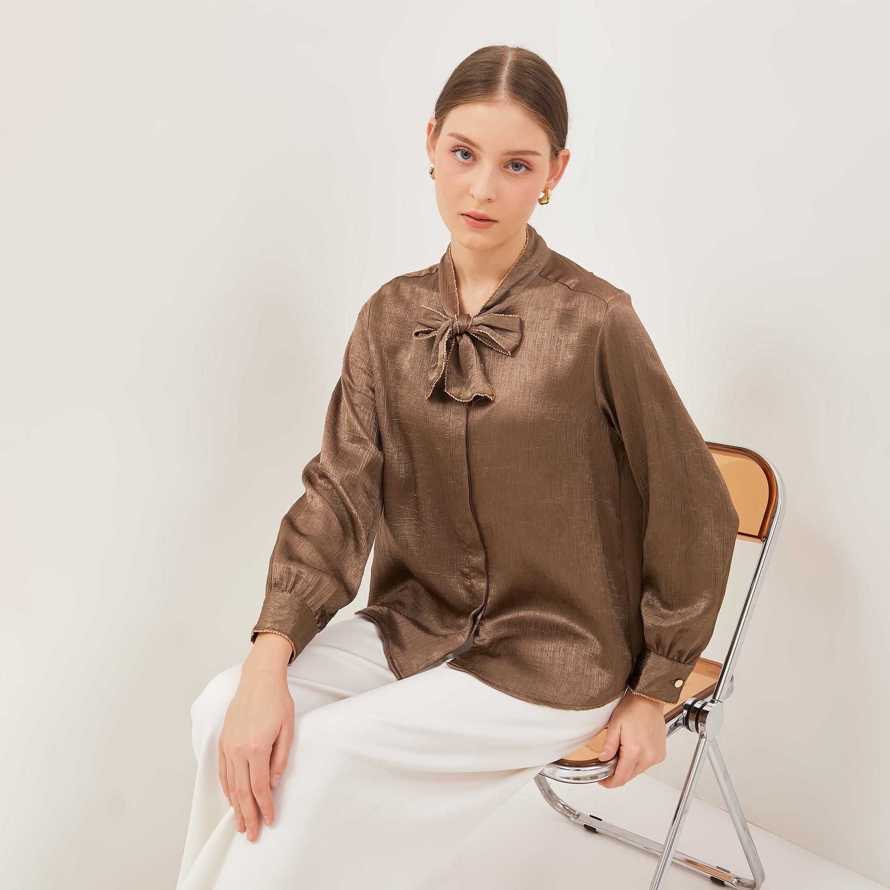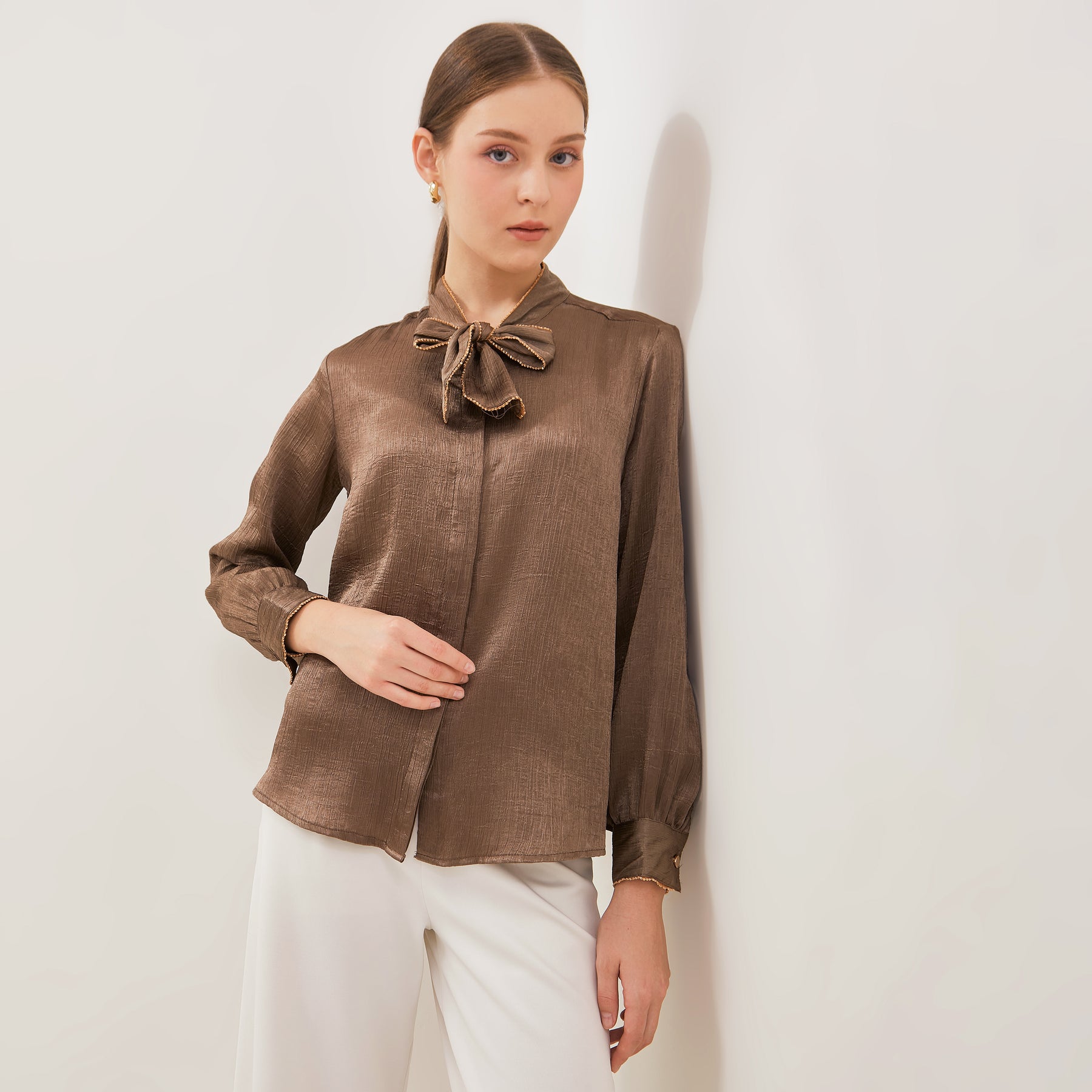 Berlengan panjang dengan bukaan kancing di ujungnya, blouse ini memberikan sentuhan klasik yang menawan