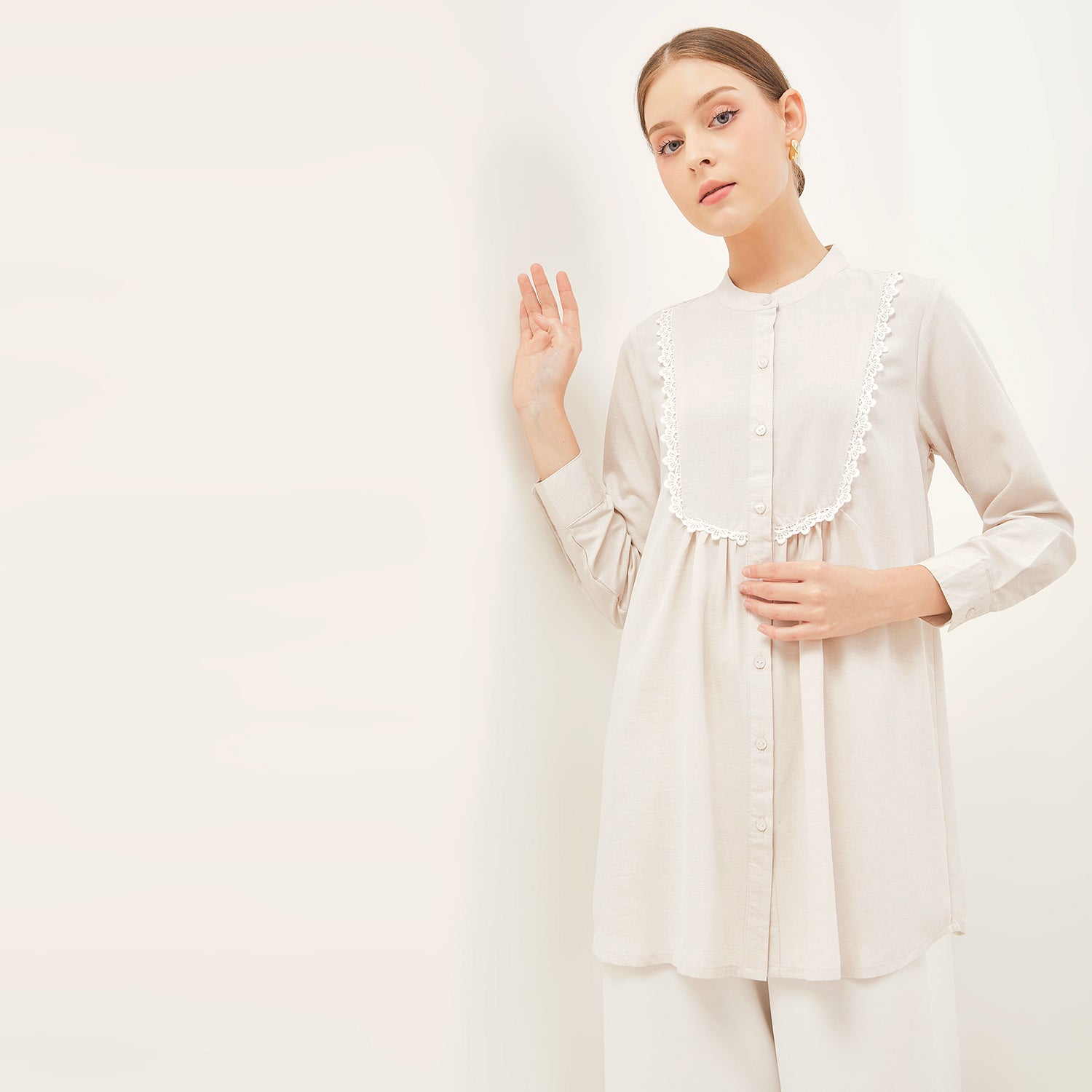 🌸 SIMPLICITY Lace Trim Front Button Tunic