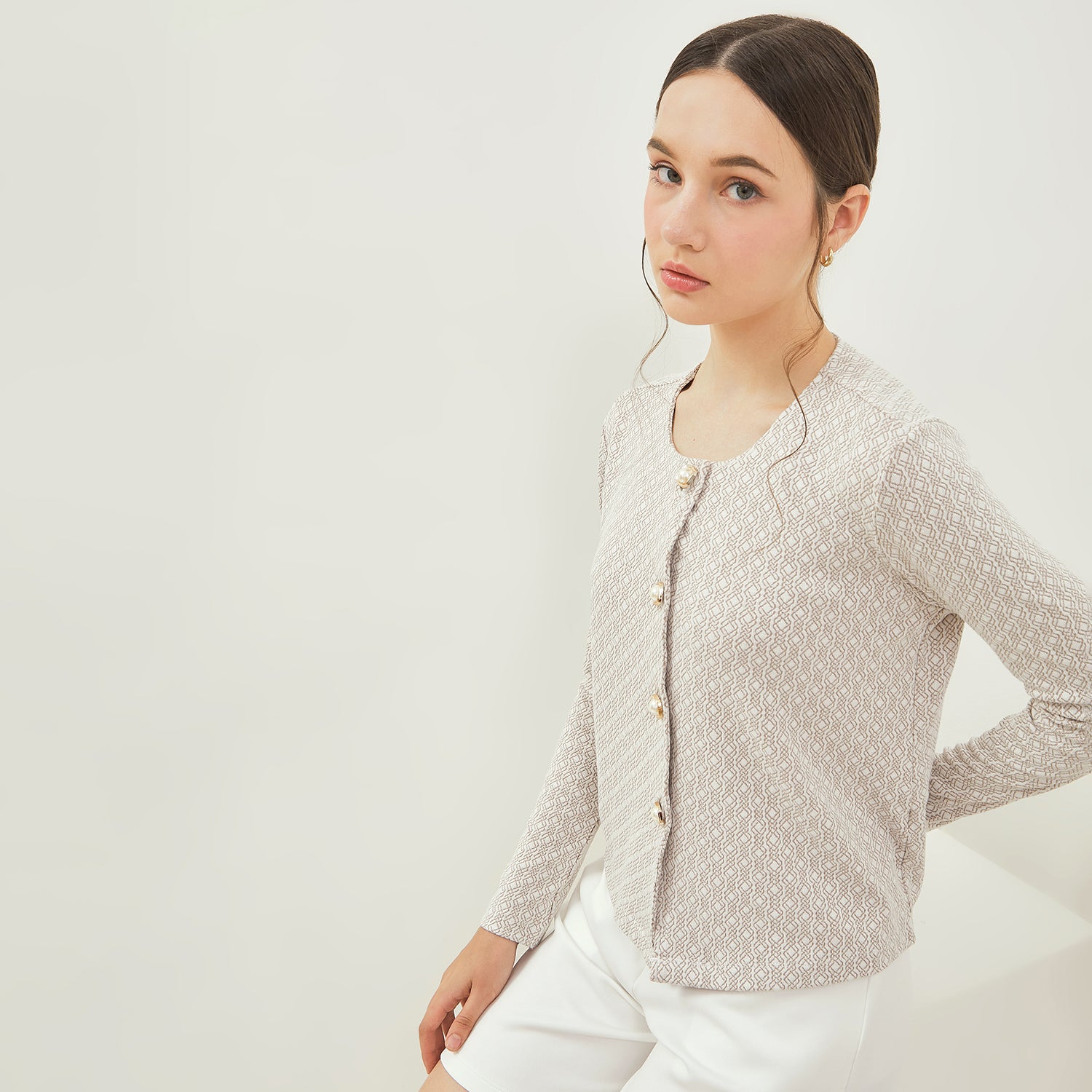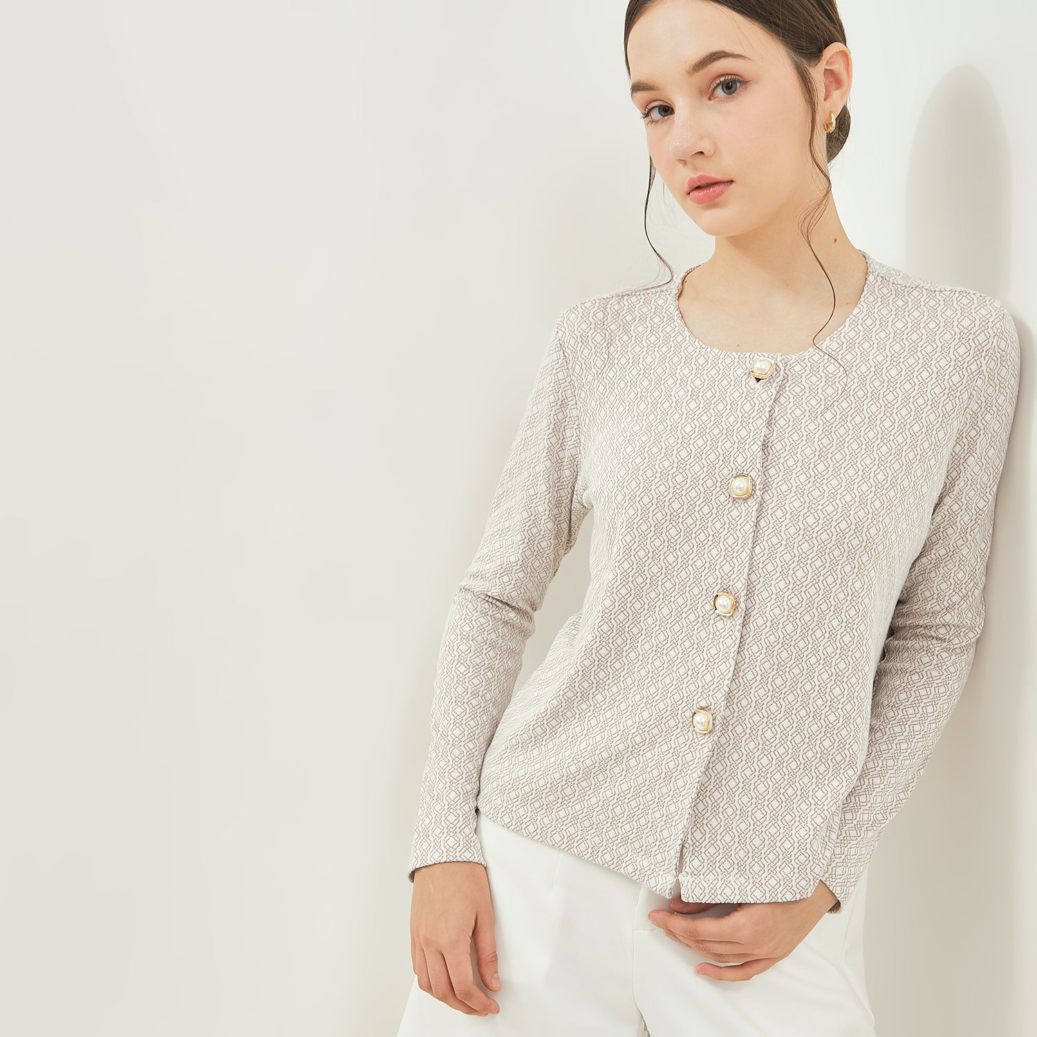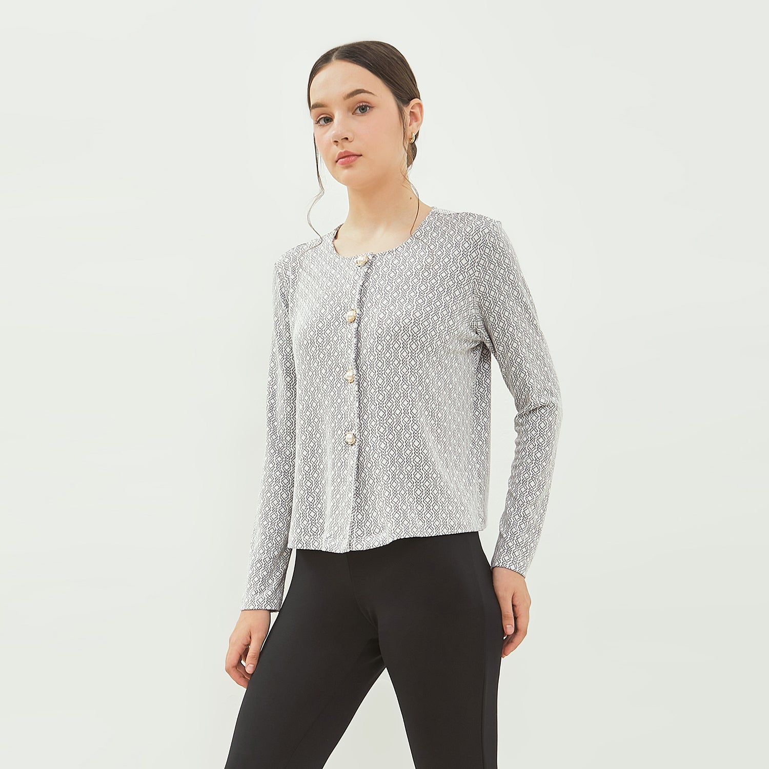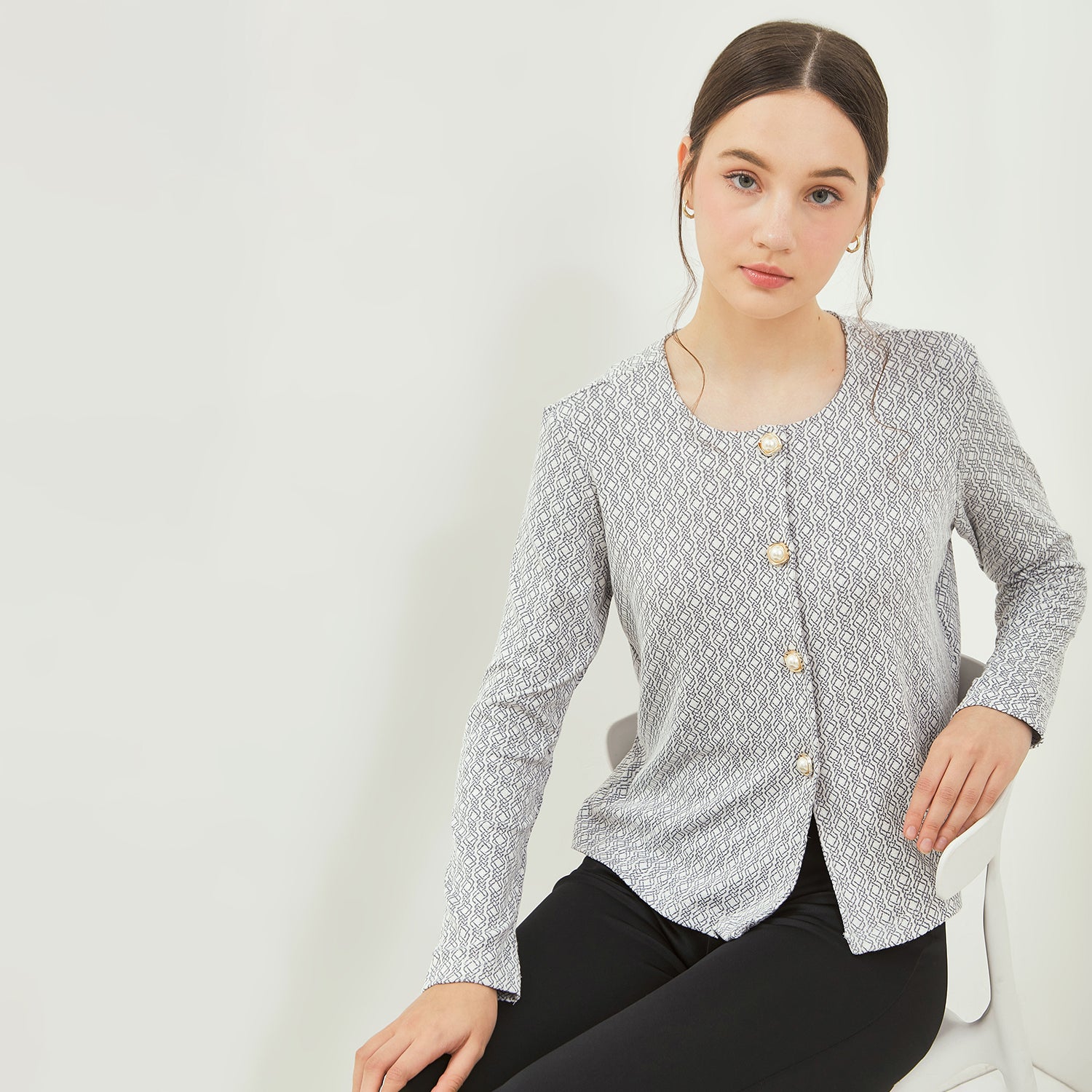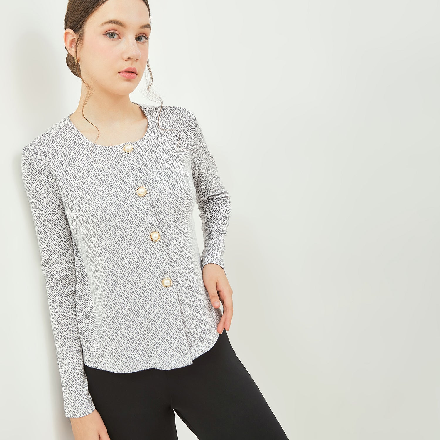 SIMPLICITY Luxe Pearl Button Knit Blouse