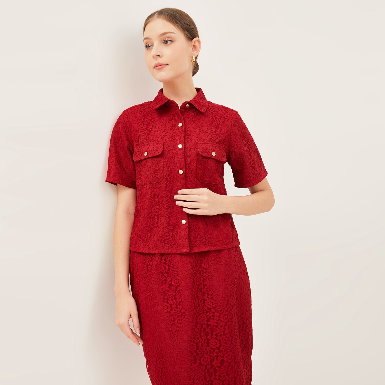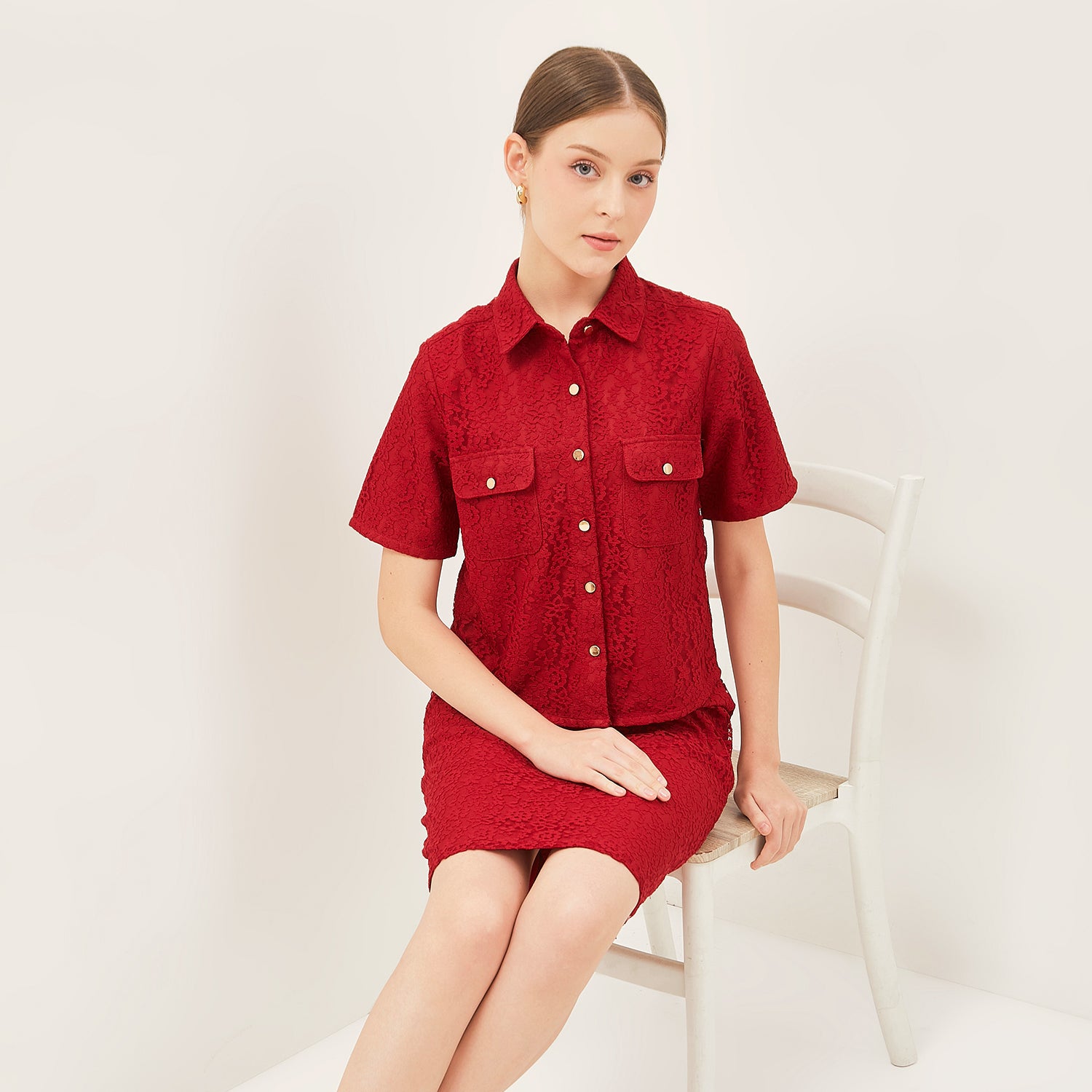 Atasan dengan bahan lace bertekstur lembut yang dilapisi furing sehingga tidak menerawang, memberikan kenyamanan sekaligus kesan elegan
