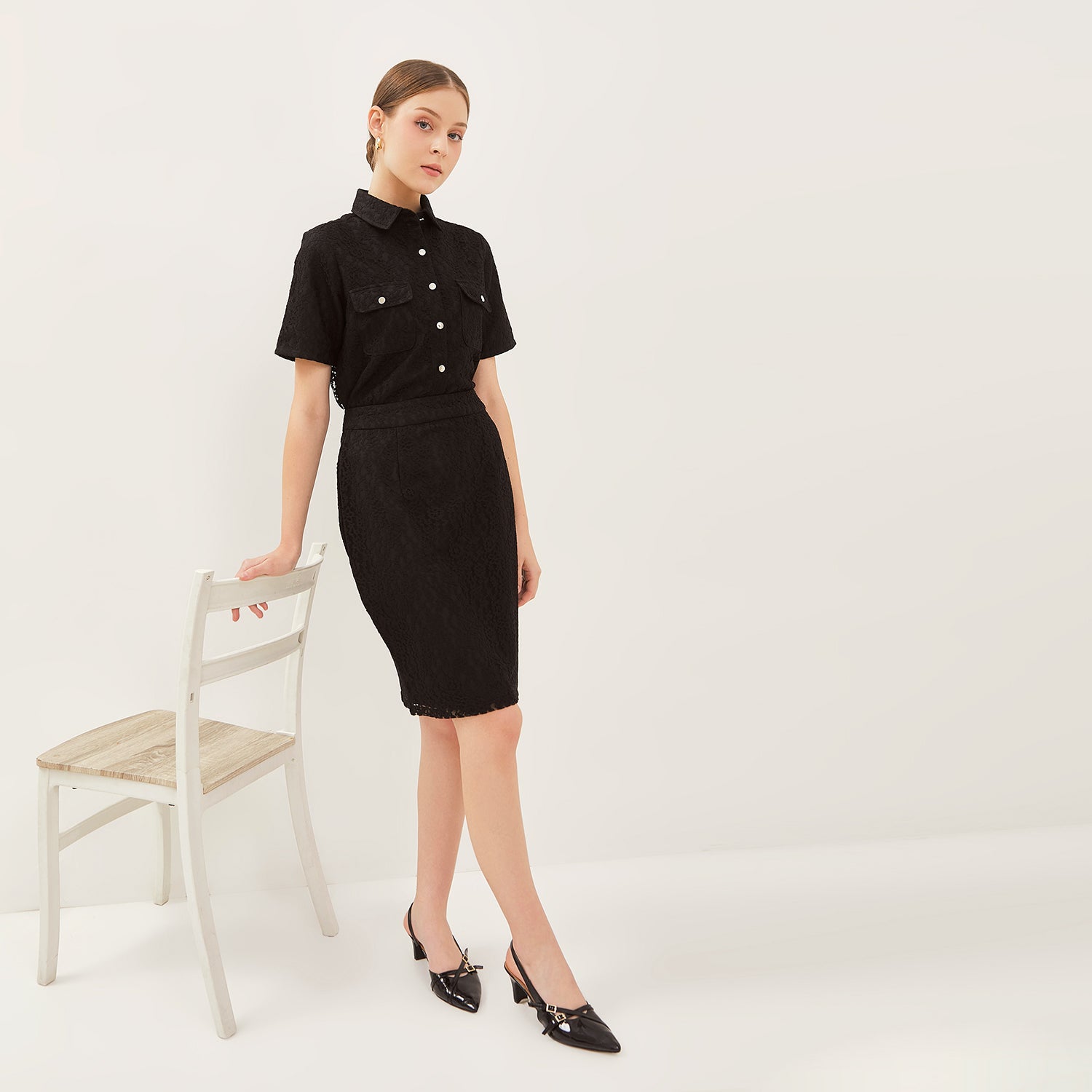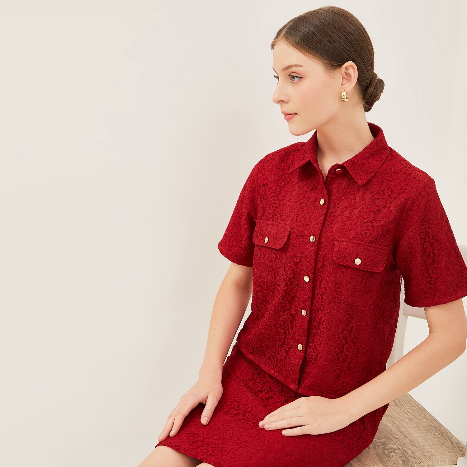 🌸 SIMPLICITY Patch Pocket Lace Shirt
