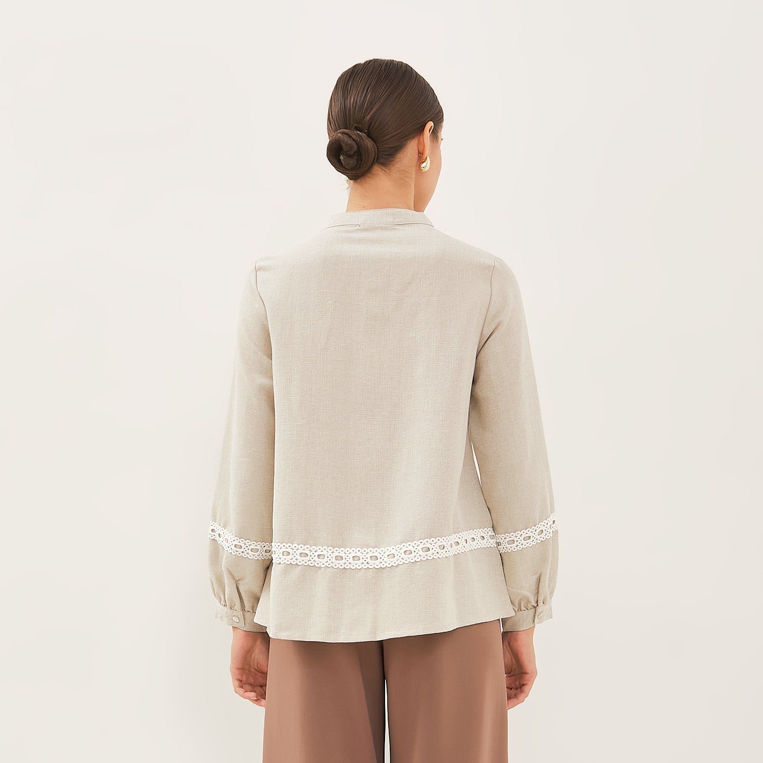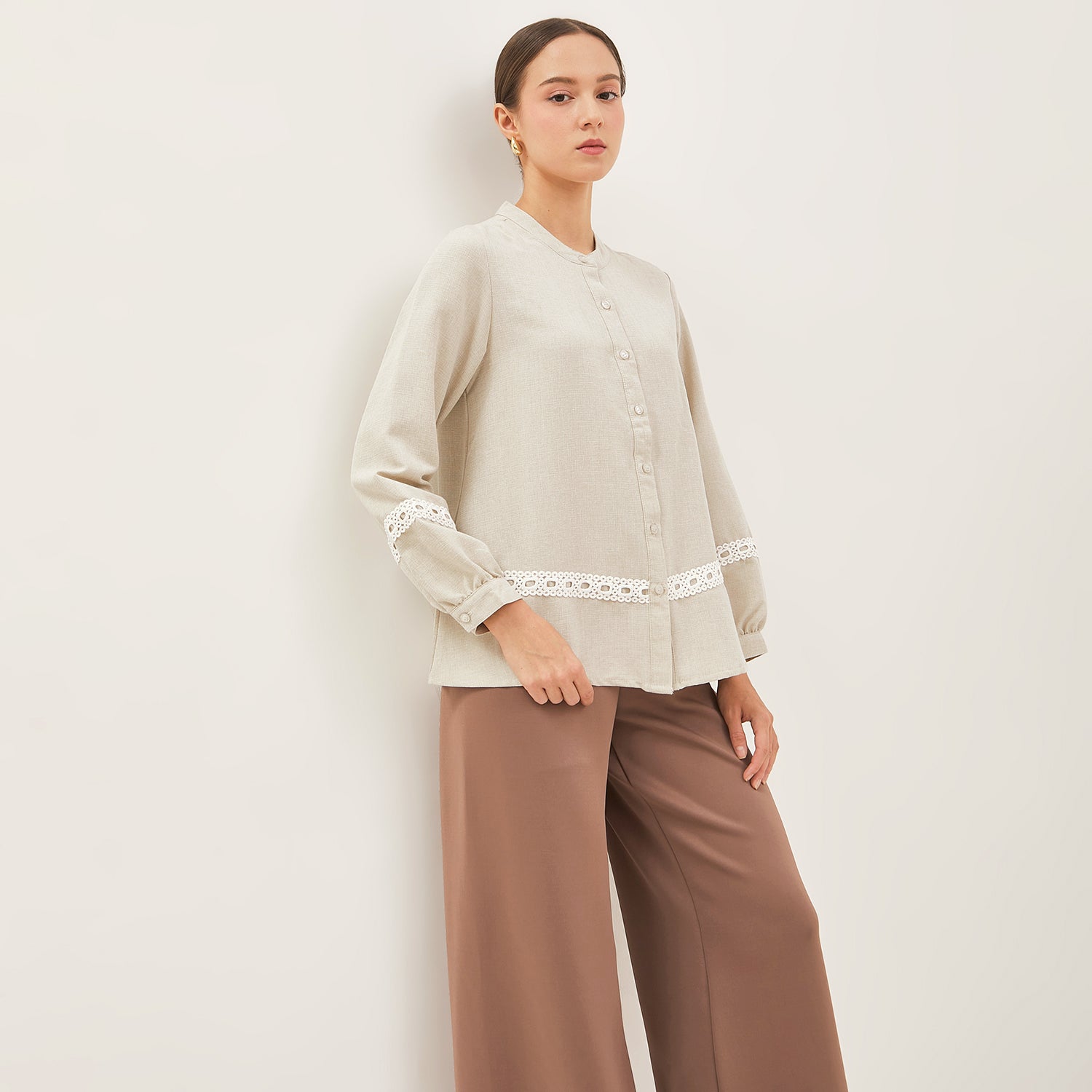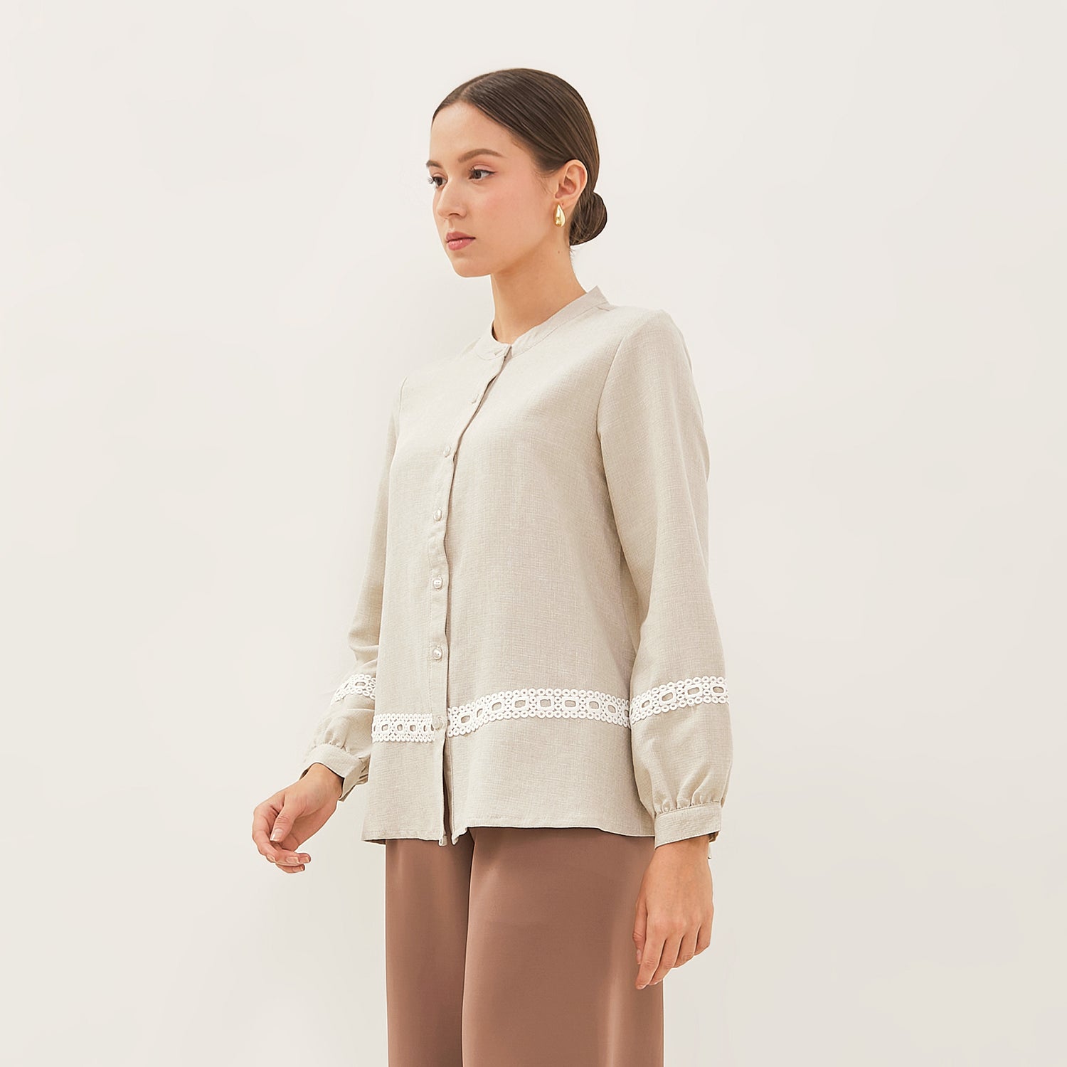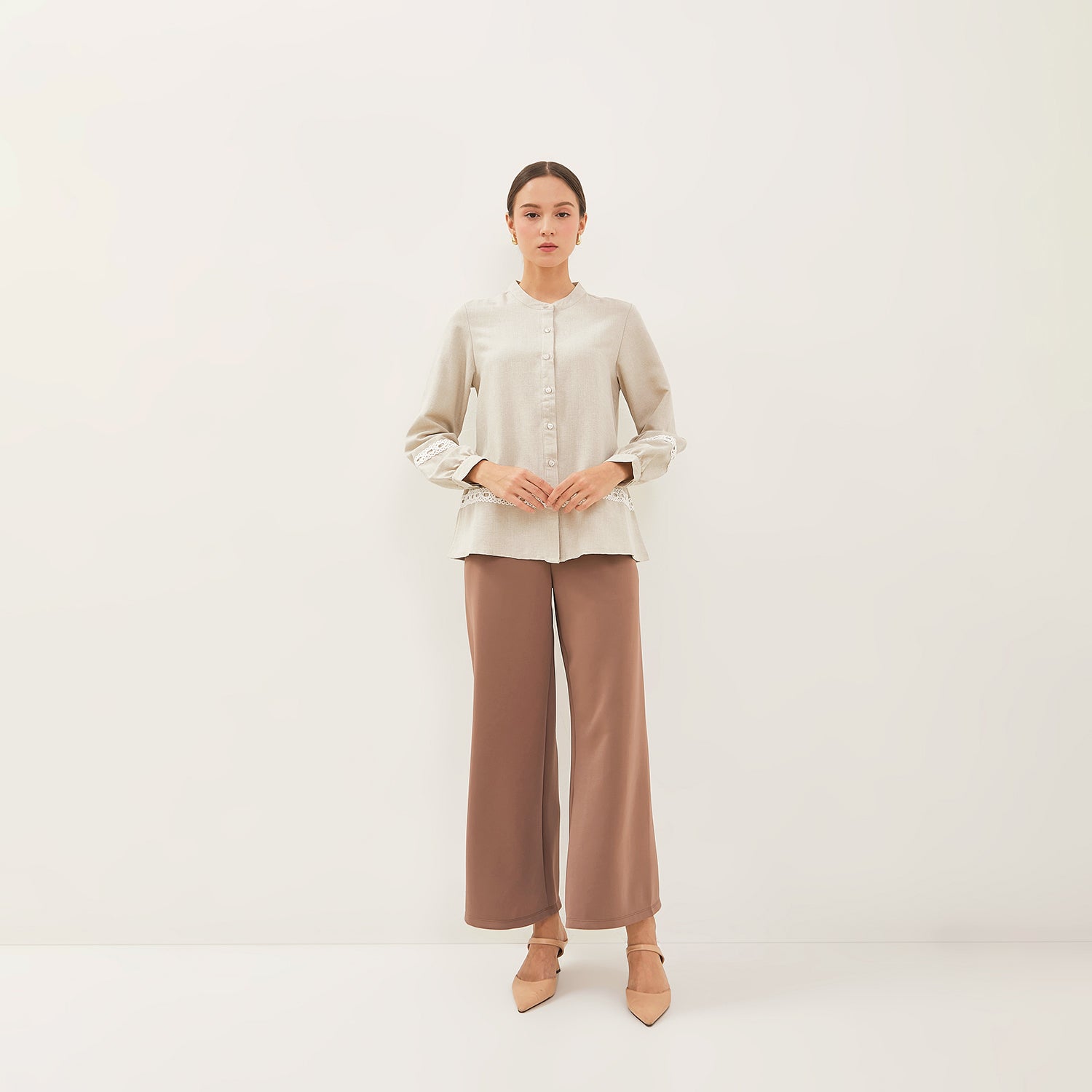 Kemeja Simplicity ini tampil anggun dan elegan dengan desain kerah mandarin yang memberi kesan rapi dan modern