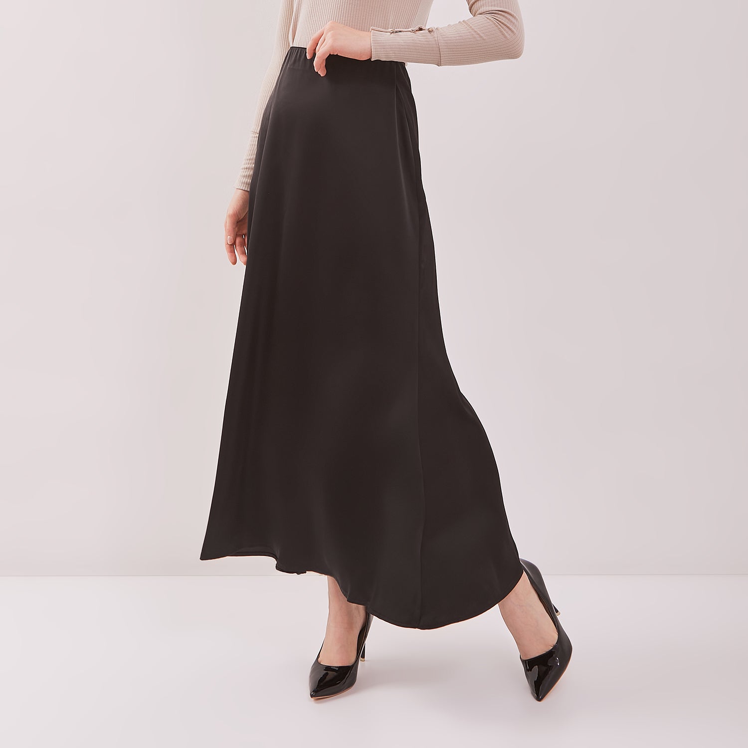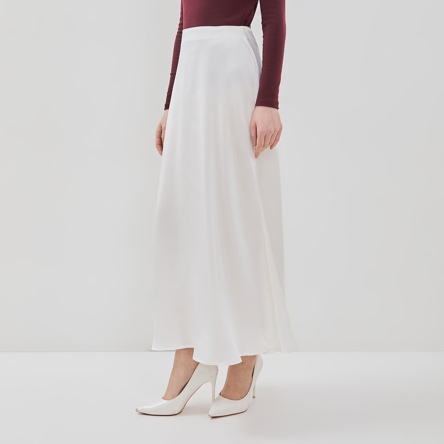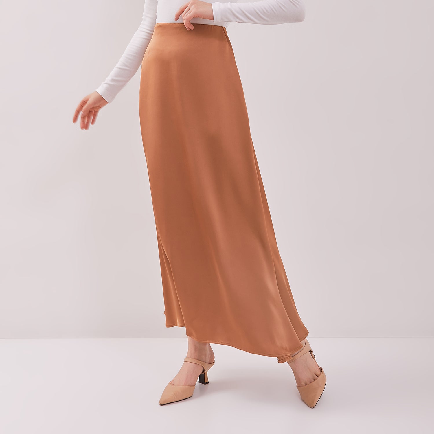 Rok Maksi Simplicity hadir dengan siluet mermaid yang membentuk garis tubuh secara lembut dan feminin