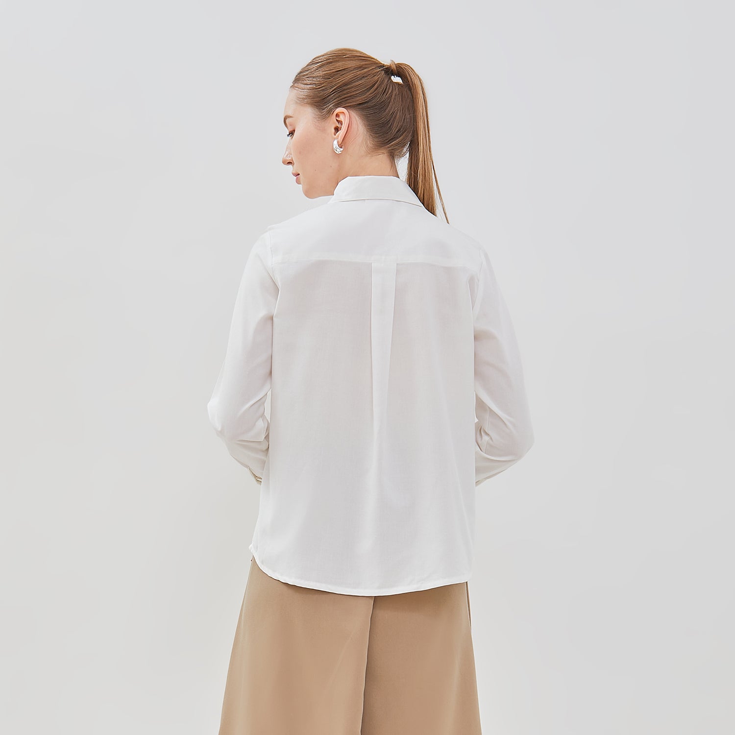 Kemeja Graphis bermotif polos ini tampil clean dengan sentuhan detail yang manis