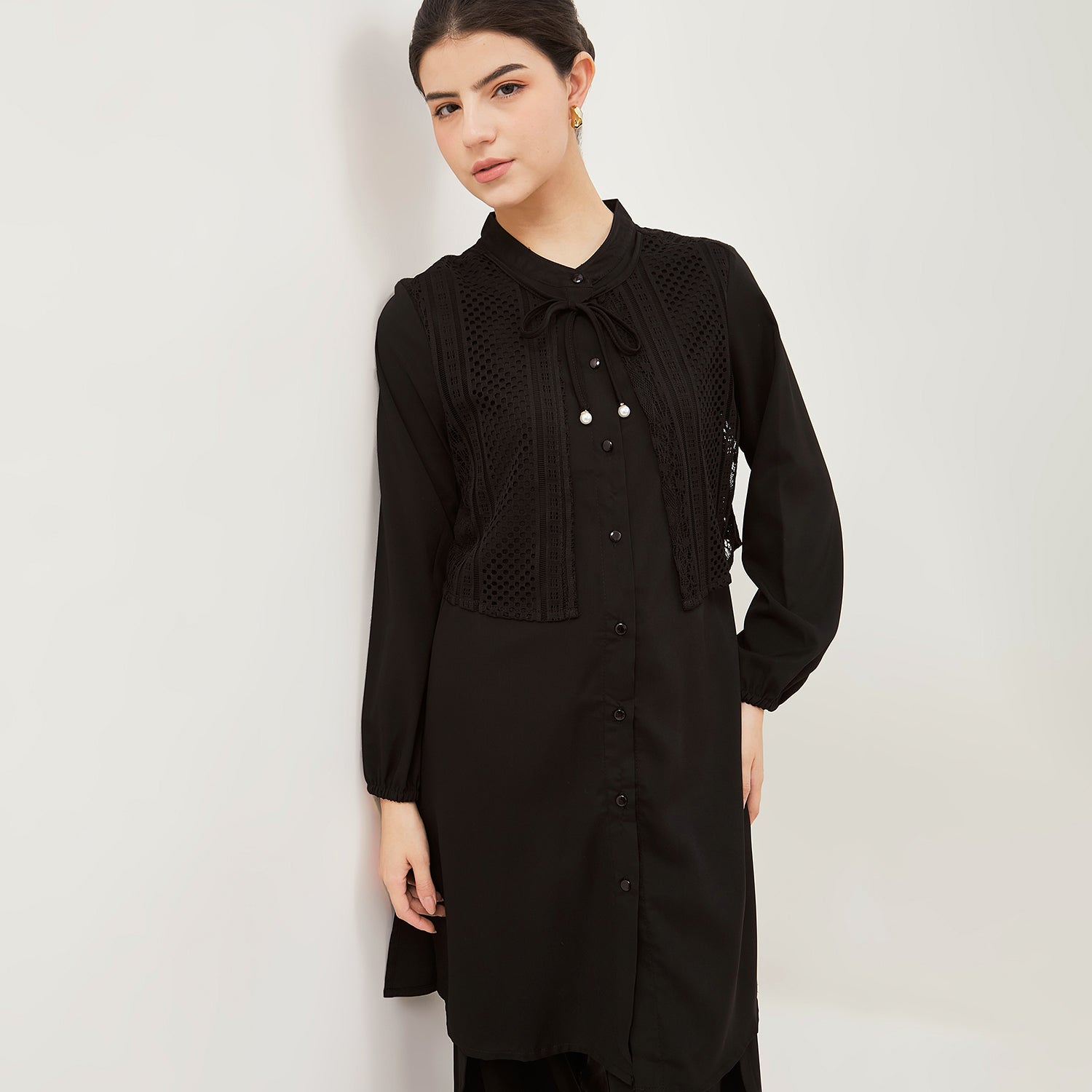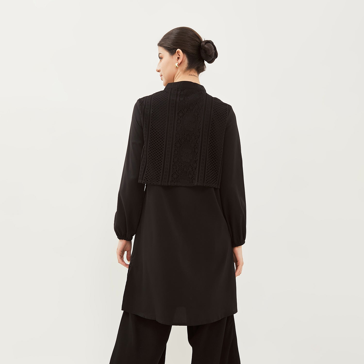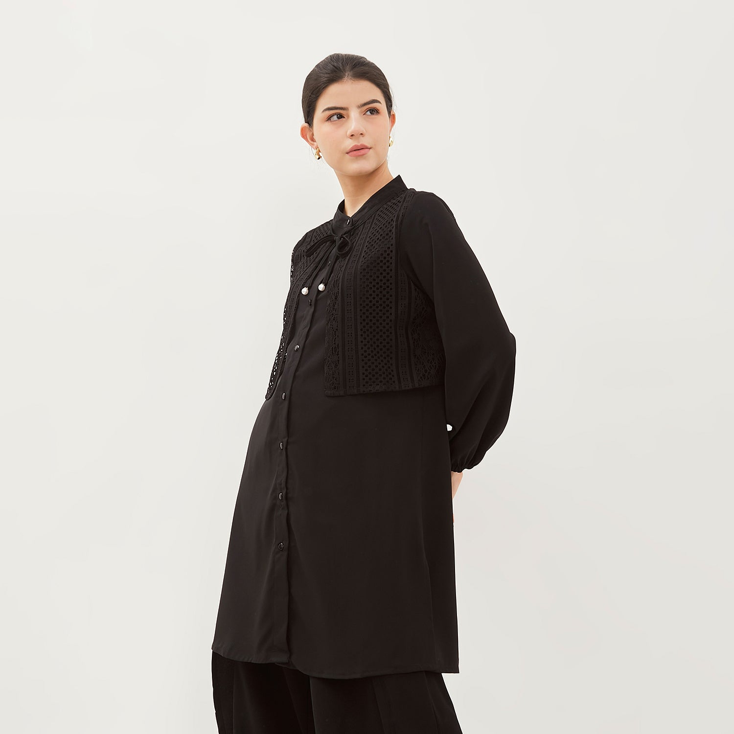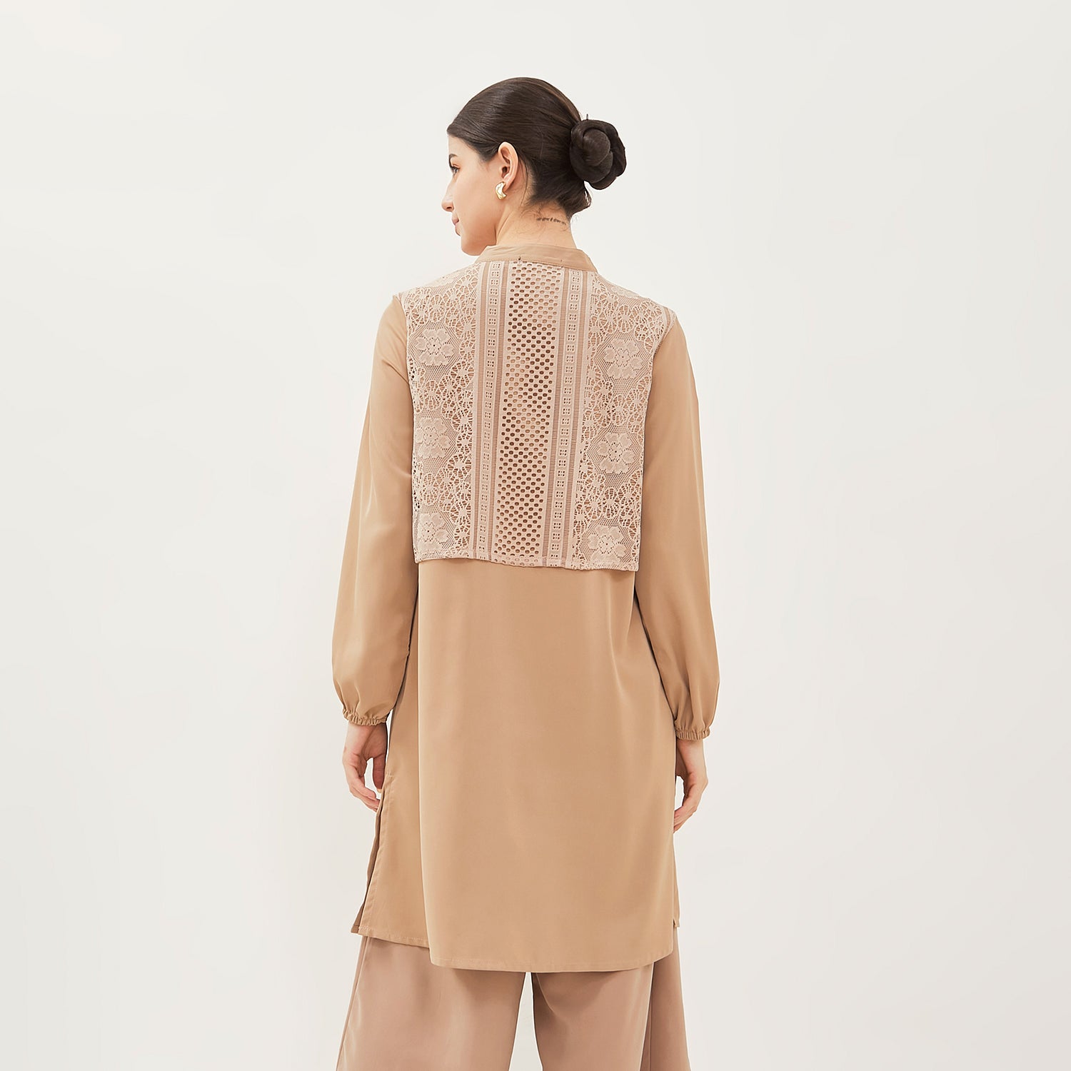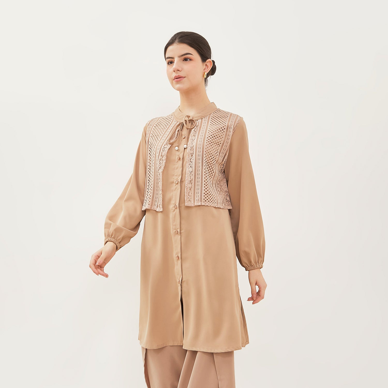 - Tunik anggun dengan model kerah Mandarin