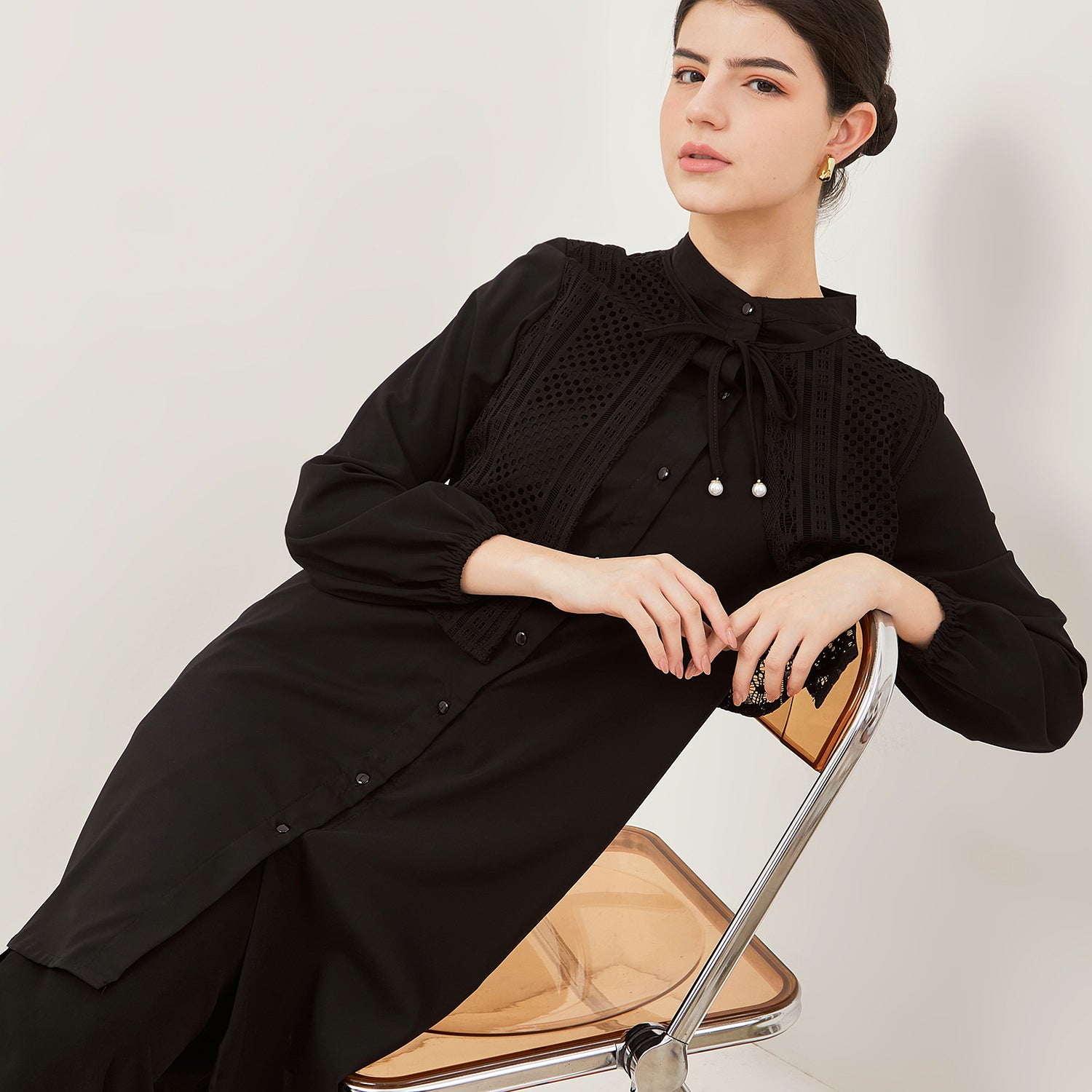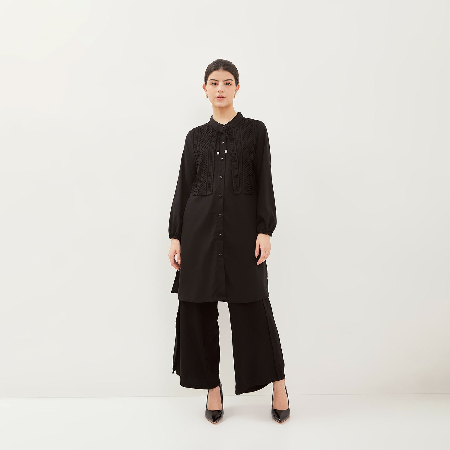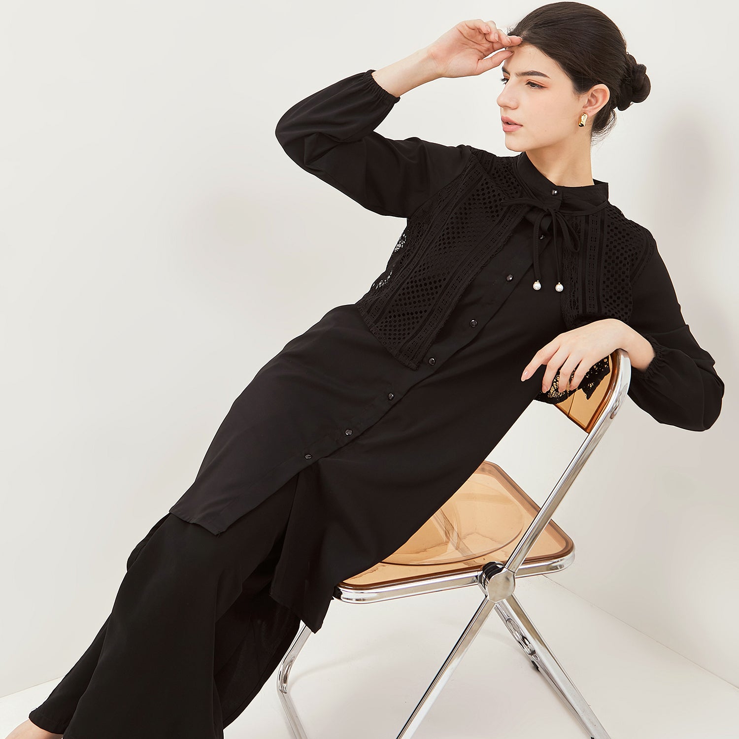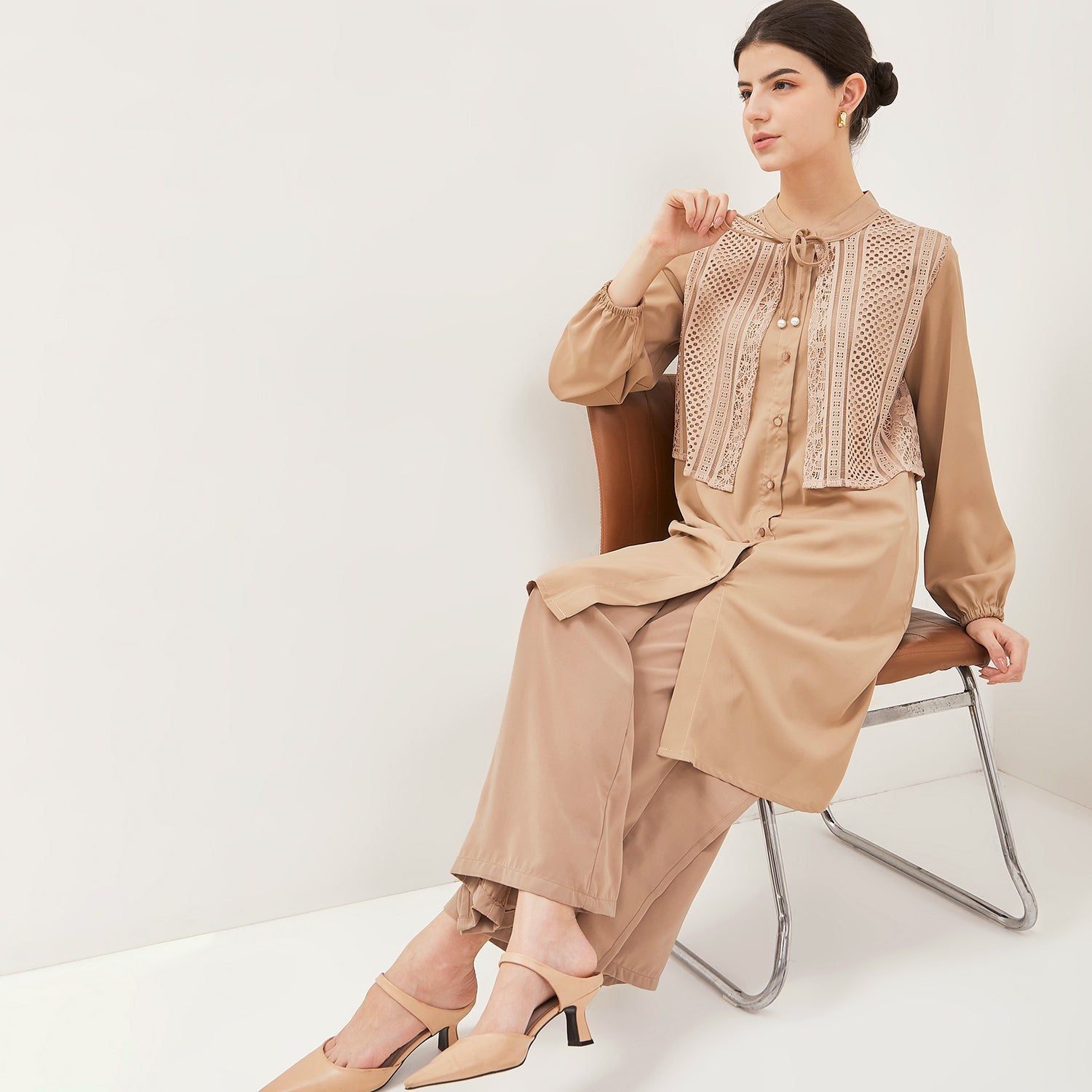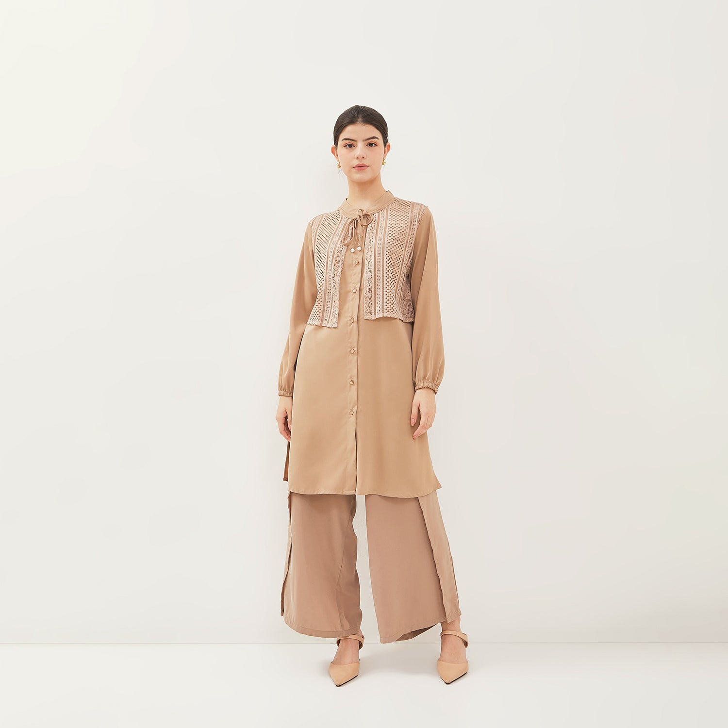 - Tunik anggun dengan model kerah Mandarin